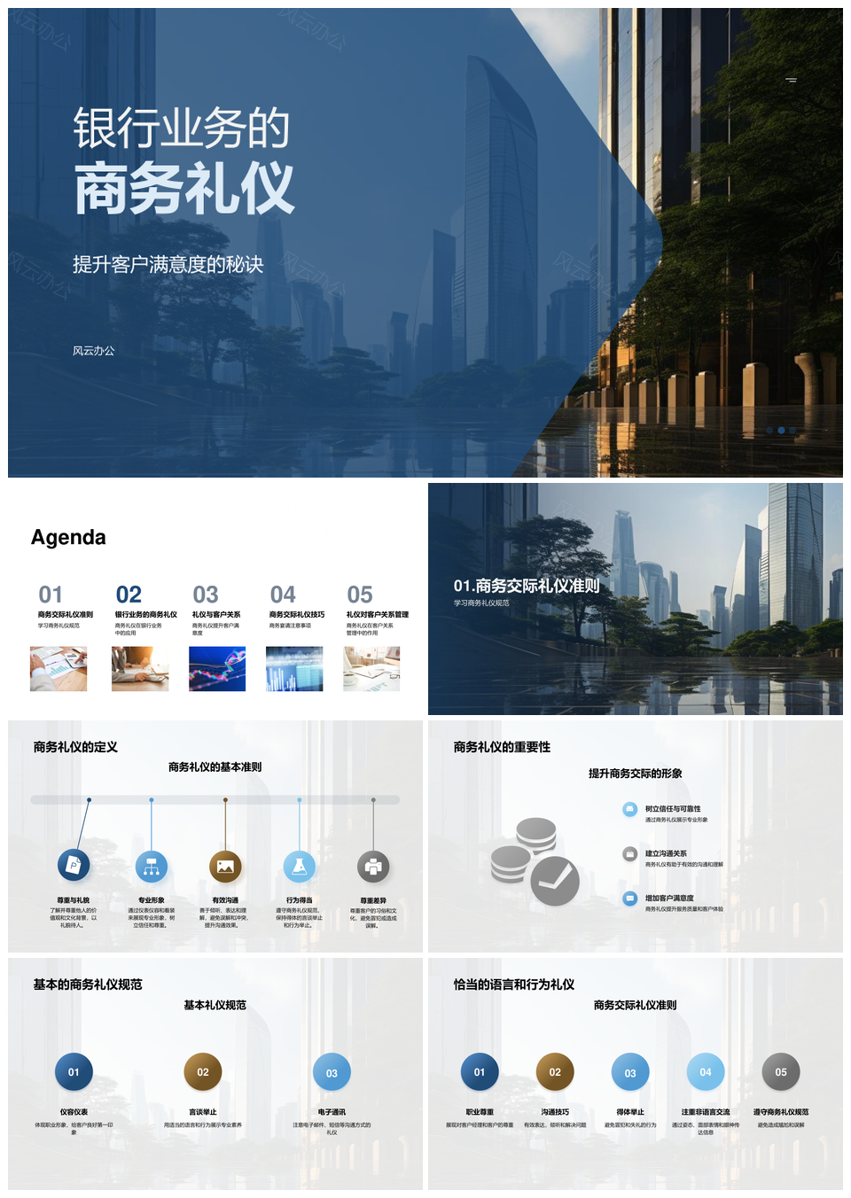 风云办公提供的银行业务商务礼仪培训与客户关系管理PPT模板,下载格式为pptx,一共33页,作品中文字及图均可以修改和编辑,图片更改请在作品中右键图片并更换,文字修改请直接点击文字进行修改。