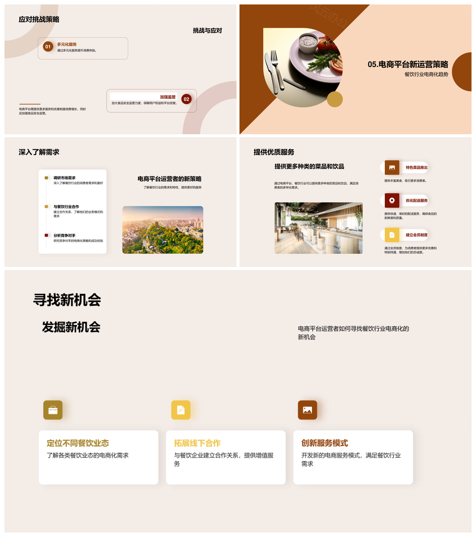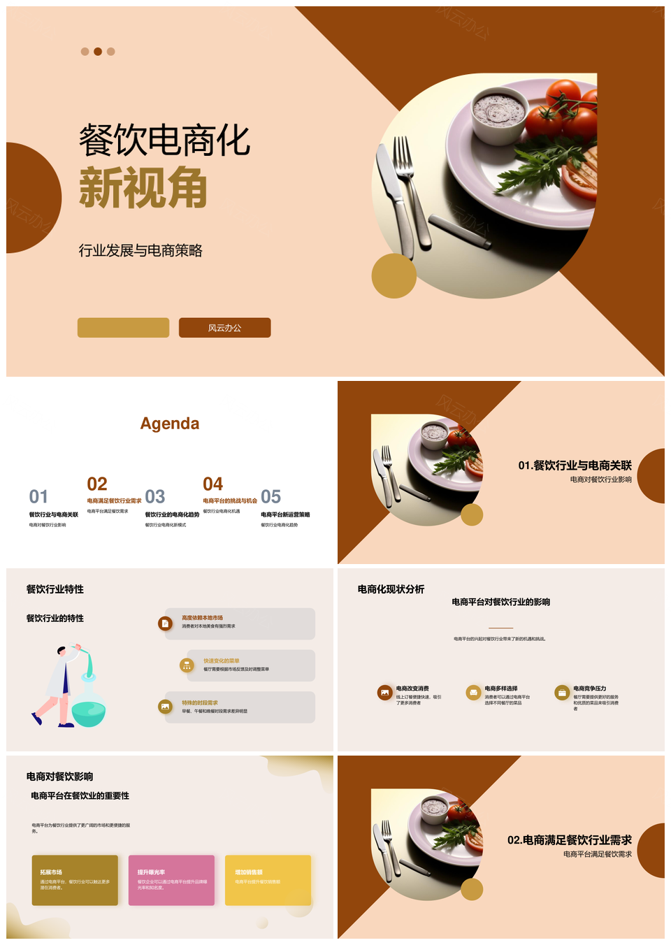 风云办公提供的餐饮电商化多元服务新模式探析PPT模板,下载格式为pptx,一共23页,作品中文字及图均可以修改和编辑,图片更改请在作品中右键图片并更换,文字修改请直接点击文字进行修改。