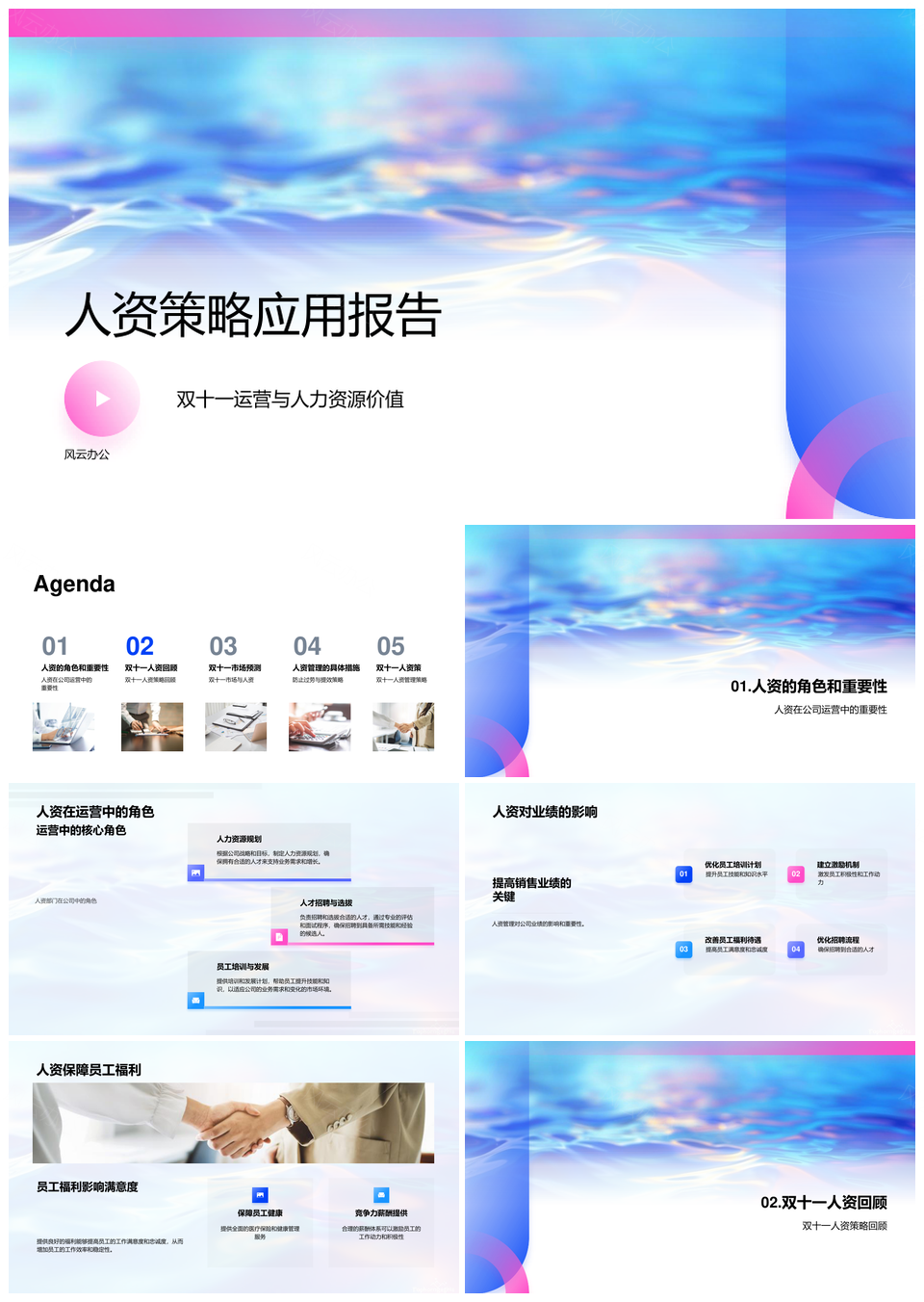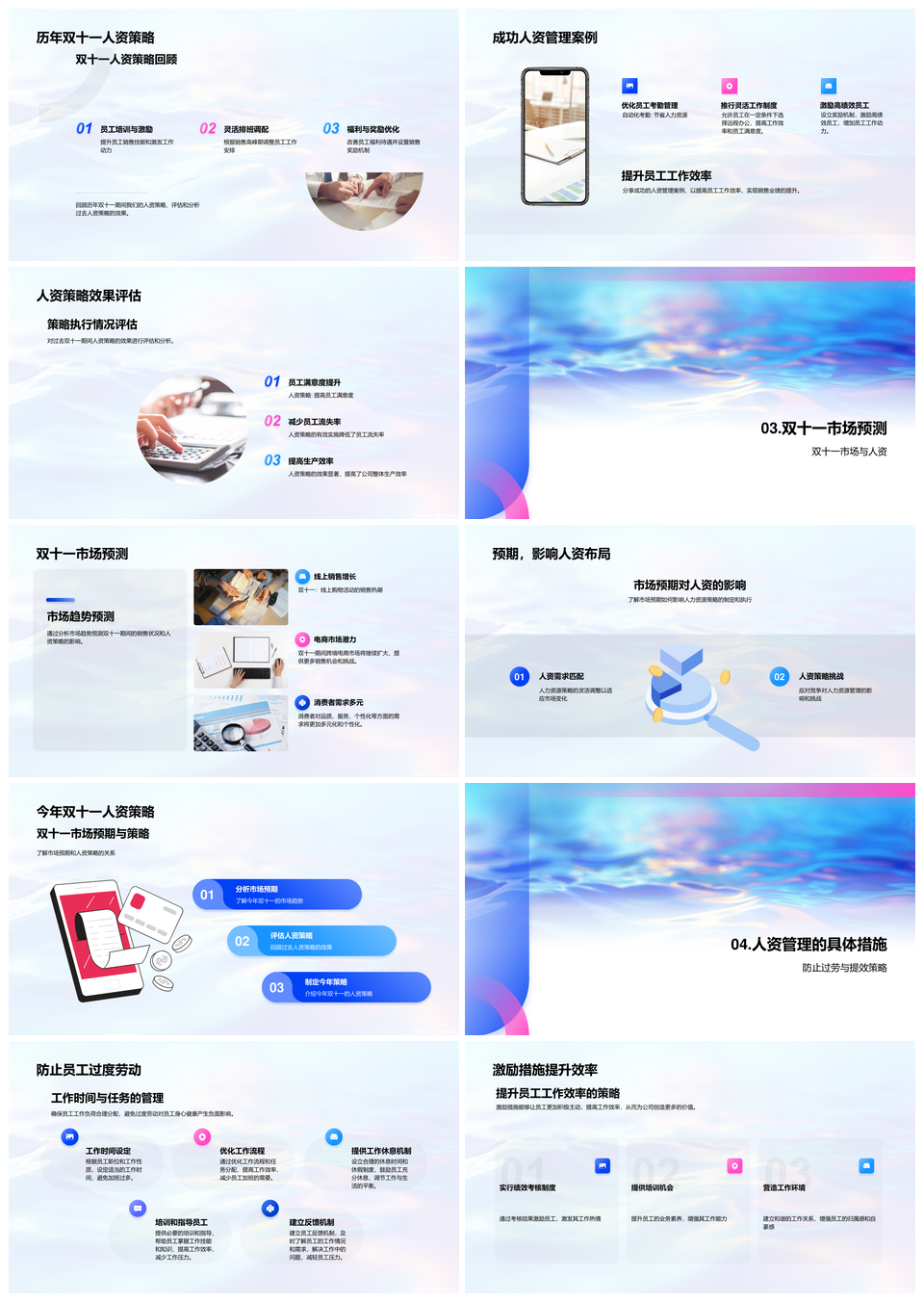 双十一人资策略运营销售业绩员工福利市场预测报告PPT模板推荐