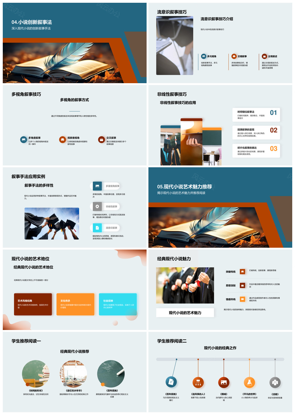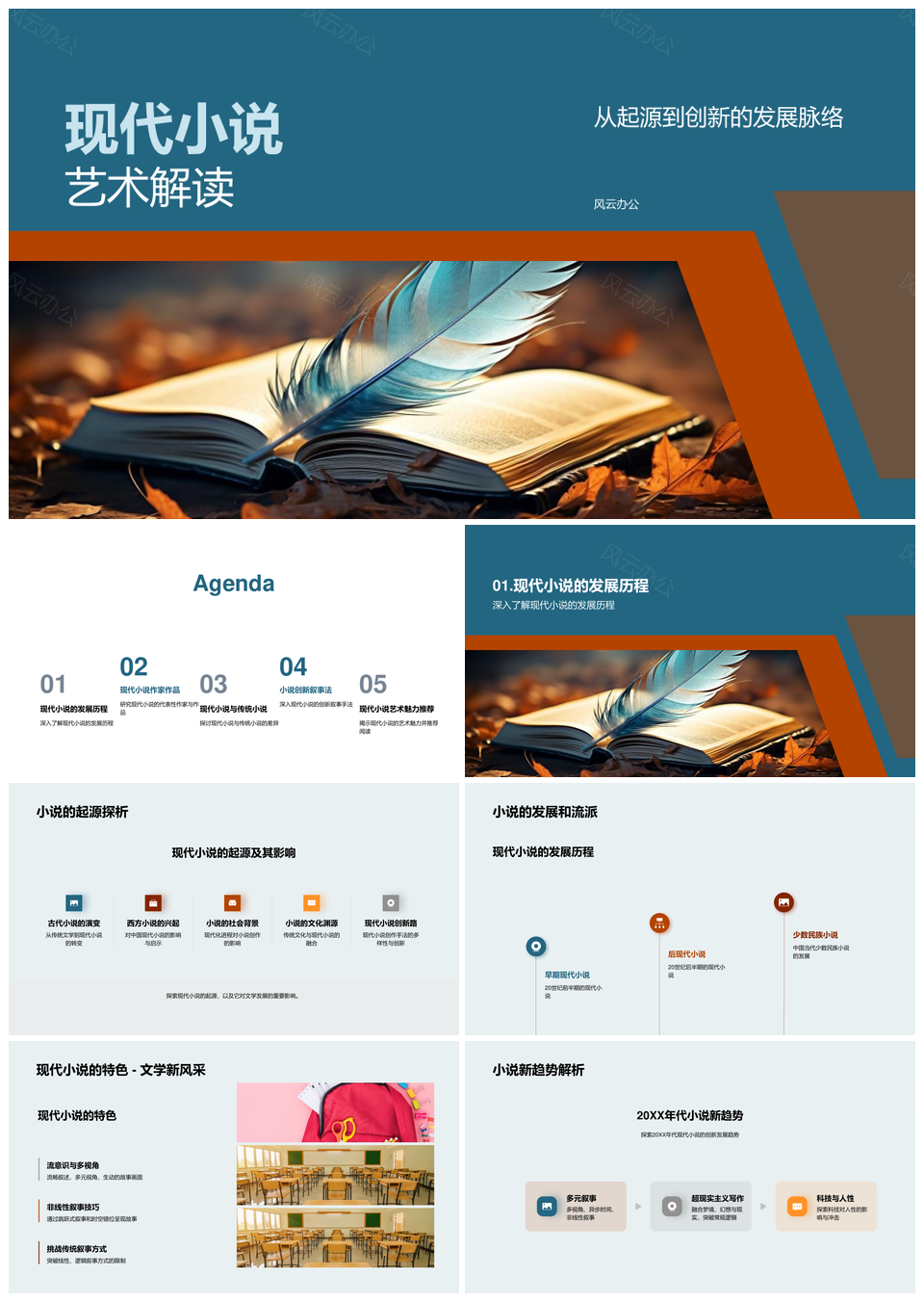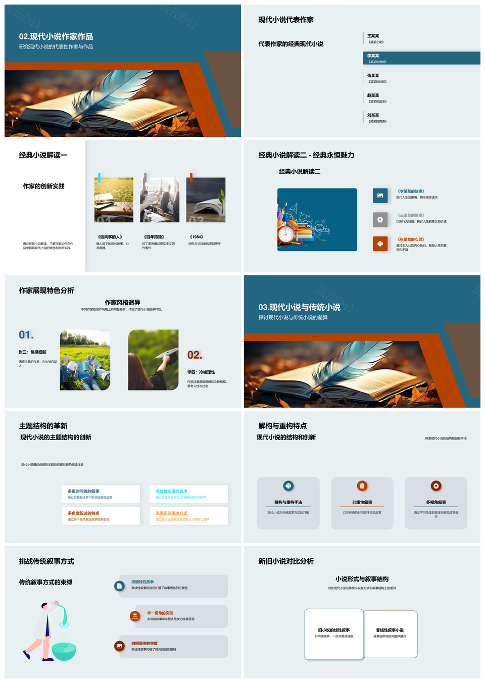 风云办公提供的现代小说艺术源流创新经典解析PPT模板,下载格式为pptx,一共28页,作品中文字及图均可以修改和编辑,图片更改请在作品中右键图片并更换,文字修改请直接点击文字进行修改。