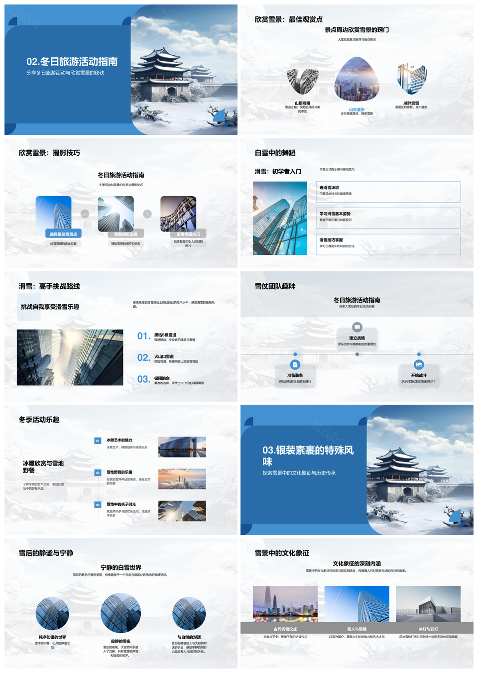 风云办公提供的雪后世界滑雪赏冰雕雪仗奇景探秘PPT模板,下载格式为pptx,一共32页,作品中文字及图均可以修改和编辑,图片更改请在作品中右键图片并更换,文字修改请直接点击文字进行修改。