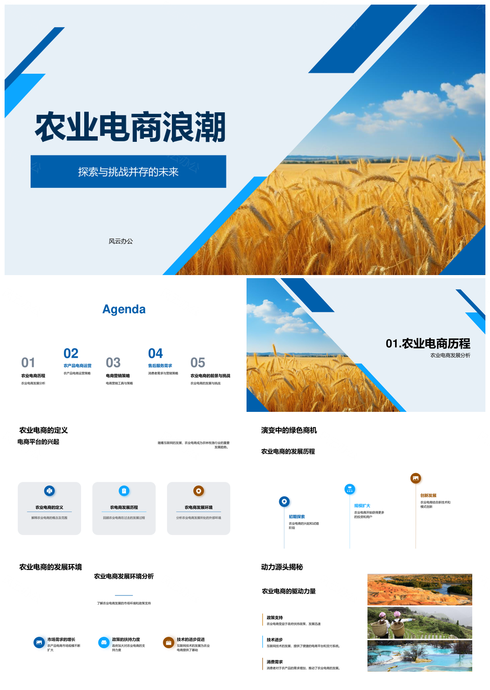 风云办公提供的农业电商平台运营策略与产品营销PPT模板,下载格式为pptx,一共26页,作品中文字及图均可以修改和编辑,图片更改请在作品中右键图片并更换,文字修改请直接点击文字进行修改。