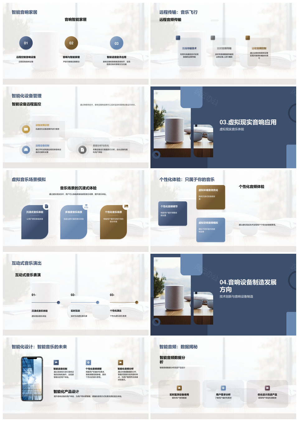 这是一张智能音响AI物联网研发未来技术新纪元PPT模板,包含智能音响、AI、物联网、研发、未来技术、新纪元等主题内容,也可用作智能音响AI物联网研发、智能音响AI研发未来技术、AI物联网研发未来技术、物联网研发未来技术新纪元、研发未来技术新纪元、智能音响AI物联网、智能音响AI研发、智能音响物联网研发、AI物联网研发、物联网研发未来技术、研发未来技术新纪元、智能音响AI、智能音响物联网、AI物联网、物联网研发等PPT场景使用。 风云办公提供的智能音响AI物联网研发未来技术新纪元PPT模板,下载格式为pptx,一共23页,作品中文字及图均可以修改和编辑,图片更改请在作品中右键图片并更换,文字修改请直接点击文字进行修改。