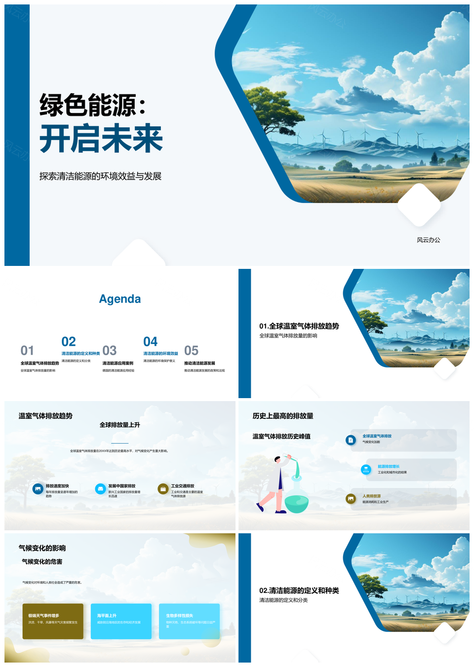 风云办公提供的清洁能源减排应对气候变化未来PPT模板,下载格式为pptx,一共25页,作品中文字及图均可以修改和编辑,图片更改请在作品中右键图片并更换,文字修改请直接点击文字进行修改。