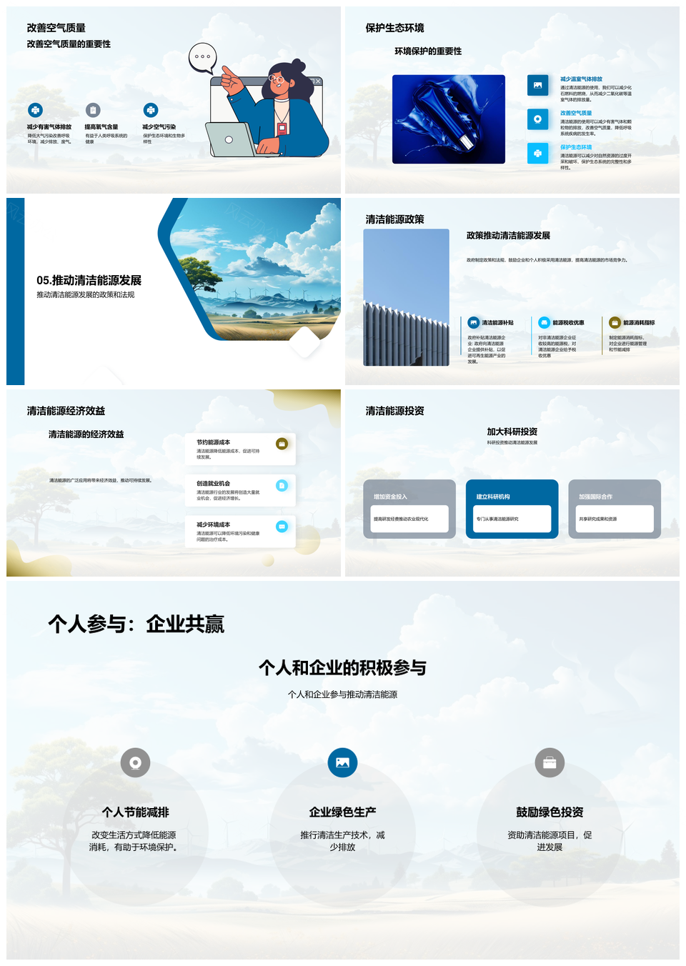 这是一张清洁能源减排应对气候变化未来PPT模板,包含清洁能源、减排、应对、气候变化、未来等主题内容,也可用作清洁能源减排应对气候变化、清洁能源应对气候变化、减排应对气候变化、应对气候变化未来、清洁能源应对未来、减排应对未来、应对气候变化、气候变化未来、清洁能源减排、清洁能源未来、减排气候变化、减排未来、应对未来、清洁能源气候变化、减排应对等PPT场景使用。