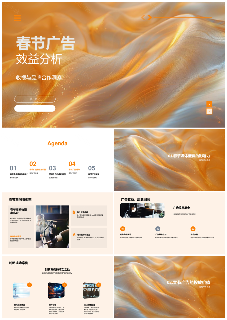 风云办公提供的2025春节广告效益分析PPT模板,下载格式为pptx,一共23页,作品中文字及图均可以修改和编辑,图片更改请在作品中右键图片并更换,文字修改请直接点击文字进行修改。
