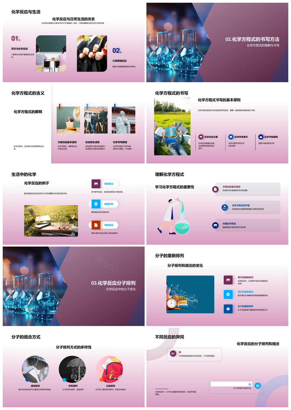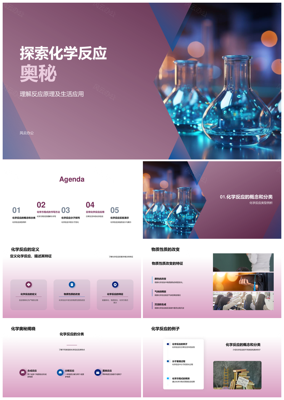 风云办公提供的化学反应方程式分子排列实验生活应用PPT模板,下载格式为pptx,一共32页,作品中文字及图均可以修改和编辑,图片更改请在作品中右键图片并更换,文字修改请直接点击文字进行修改。