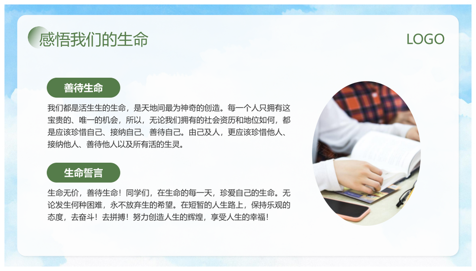 这是一张绿色简约生命教育班会PPT珍爱生命健康成长,包含绿色、简约、生命教育、班会、珍爱、生命、健康、成长等主题内容,也可用作绿色简约生命教育班会、简约生命教育班会PPT、生命教育班会PPT珍爱生命、班会PPT珍爱生命健康成长、绿色简约生命教育、简约生命教育班会、生命教育班会PPT、班会PPT珍爱生命、PPT珍爱生命健康成长、绿色简约生命、简约生命教育班、生命教育班PPT、教育班会PPT珍爱、班会PPT珍爱、绿色简约班会等PPT场景使用。