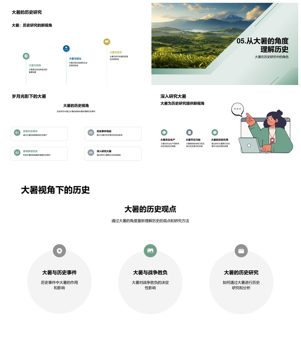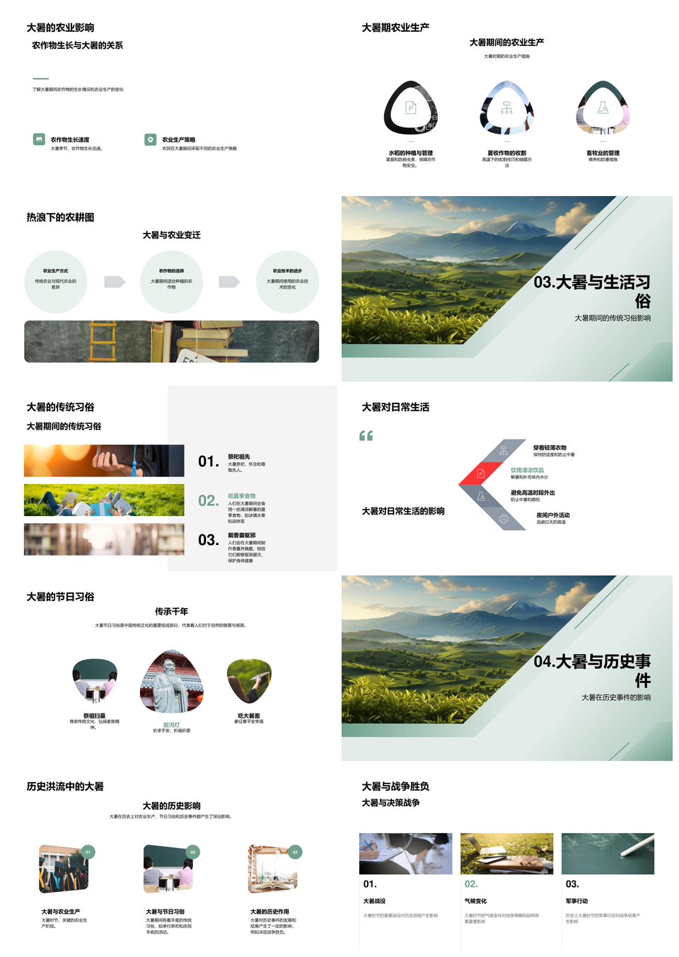 这是一张大暑节气历史农事与战争习俗PPT模板,包含大暑节气、历史农事、战争习俗等主题内容,也可用作大暑节气历史农事、大暑节气农事战争、大暑历史农事战争、历史农事战争习俗、大暑节气历史、大暑节气农事、大暑历史农事、节气历史农事、历史农事战争、农事战争习俗、大暑农事战争、节气农事战争、大暑节气、历史农事、农事战争等PPT场景使用。