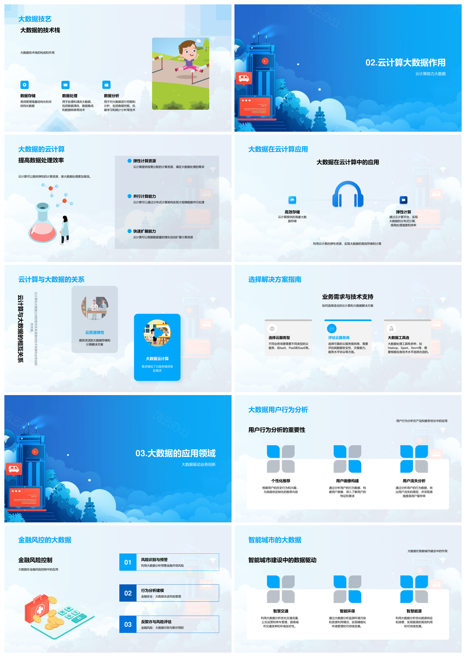 2025蓝色云时代互联网科技云计算微营销科技信息大数据应用PPT模板