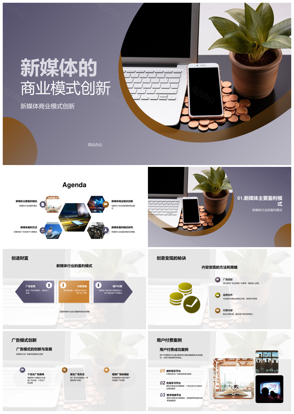 2025新媒体商业模式创新驱动内容变现广告用户付费PPT模板推荐