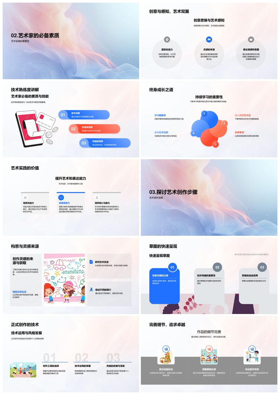 艺术创作教学课程创意技法构思草图创作提升PPT模板推荐