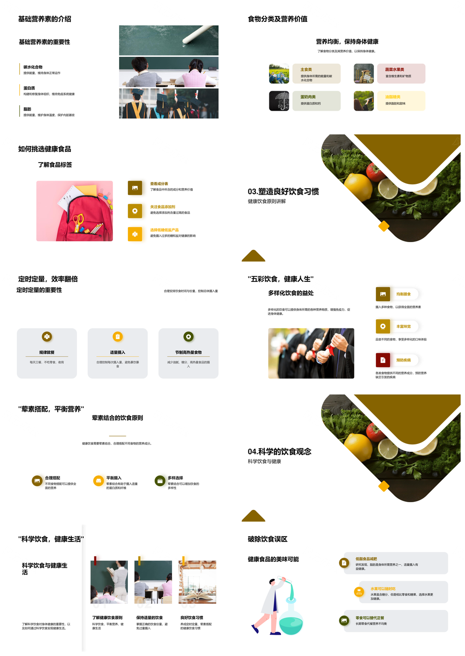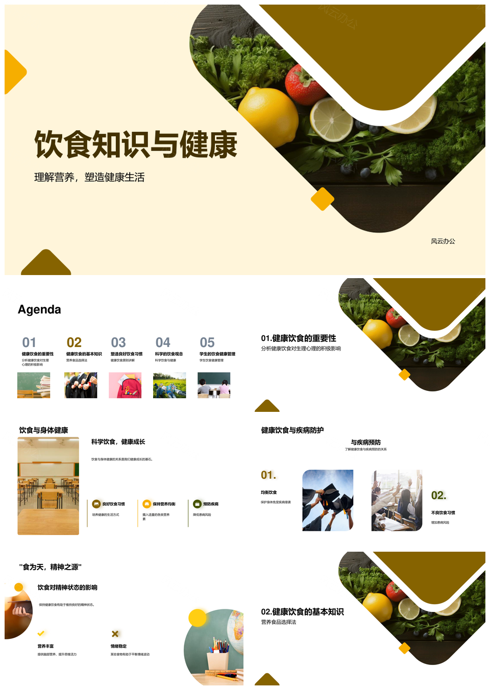 风云办公提供的饮食营养健康搭配果蔬防病健心PPT模板,下载格式为pptx,一共23页,作品中文字及图均可以修改和编辑,图片更改请在作品中右键图片并更换,文字修改请直接点击文字进行修改。