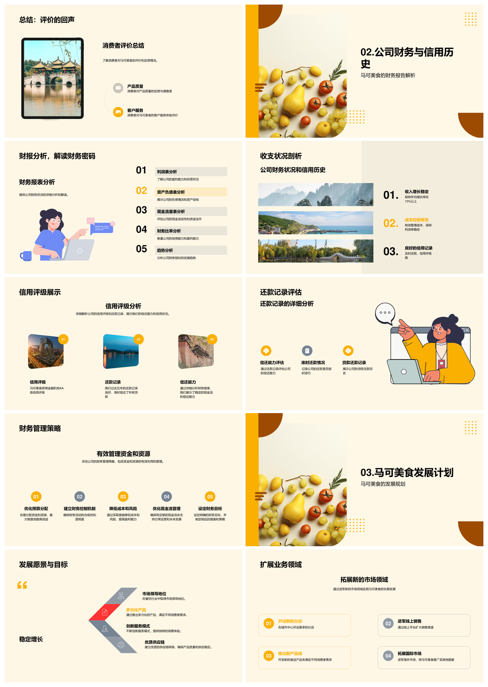 这是一张马可美食融资策略驱动餐饮业贷款信用发展PPT模板,包含马可美食、融资策略、驱动、餐饮业、贷款、信用、发展等主题内容,也可用作马可美食融资策略、融资策略驱动餐饮业、餐饮业贷款信用发展、贷款信用发展、驱动餐饮业贷款、策略驱动餐饮业、马可美食融资、融资策略驱动、餐饮业贷款、贷款信用、美食融资策略驱动、策略驱动餐饮业贷款、驱动餐饮业贷款信用、餐饮业贷款信用、信用发展等PPT场景使用。 风云办公提供的马可美食融资策略驱动餐饮业贷款信用发展PPT模板,下载格式为pptx,一共33页,作品中文字及图均可以修改和编辑,图片更改请在作品中右键图片并更换,文字修改请直接点击文字进行修改。
