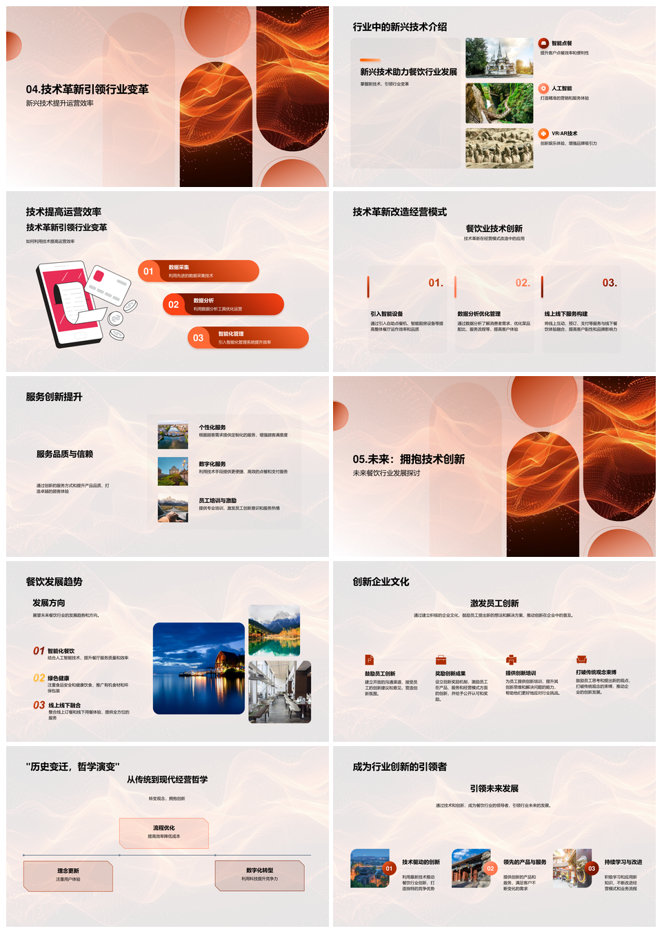 这是一张餐饮创新技术升级行业改革趋势分析PPT模板,包含餐饮、创新技术、升级、行业、改革、趋势、分析等主题内容,也可用作餐饮创新技术升级、技术升级行业改革、行业改革趋势分析、创新技术升级、技术升级行业、升级行业改革、行业改革趋势、改革趋势分析、餐饮创新、创新技术、技术升级、升级行业、行业改革、改革趋势、趋势分析等PPT场景使用。