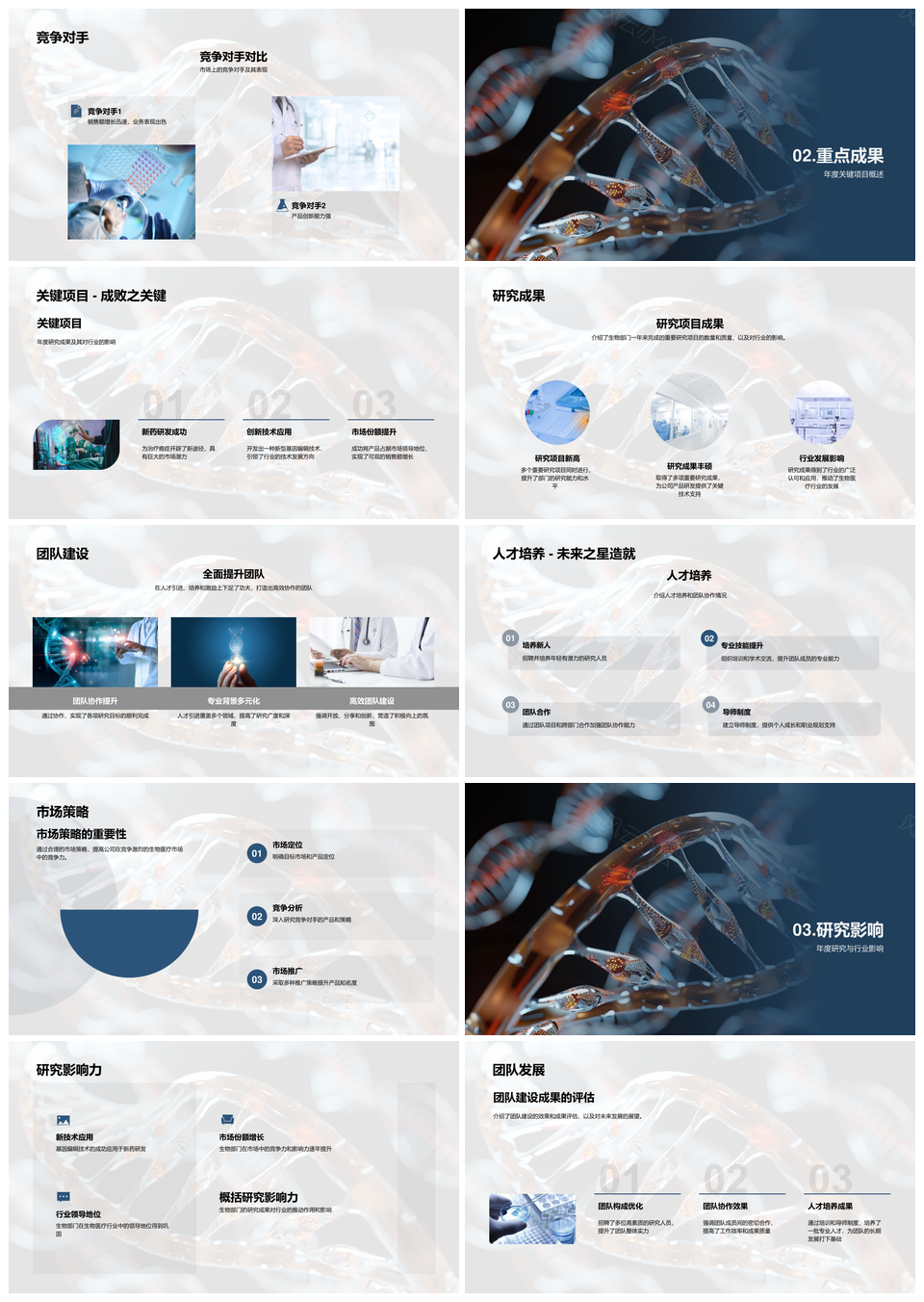 这是一张生物医疗季度研发动向关键项目染色体螺旋模型PPT模板,包含生物医疗、季度、研发、动向、关键项目、染色体、螺旋模型等主题内容,也可用作生物医疗季度研发动向、生物医疗关键项目染色体、季度研发动向关键项目、研发动向关键染色体螺旋、关键项目染色体螺旋模型、生物医疗研发动向关键、季度动向关键项目染色体、研发项目染色体螺旋模型、生物医疗染色体螺旋模型、季度研发关键染色体螺旋、动向关键项目螺旋模型、生物医疗关键螺旋模型、季度项目染色体模型、研发螺旋模型、关键染色体模型等PPT场景使用。 风云办公提供的生物医疗季度研发动向关键项目染色体螺旋模型PPT模板,下载格式为pptx,一共26页,作品中文字及图均可以修改和编辑,图片更改请在作品中右键图片并更换,文字修改请直接点击文字进行修改。