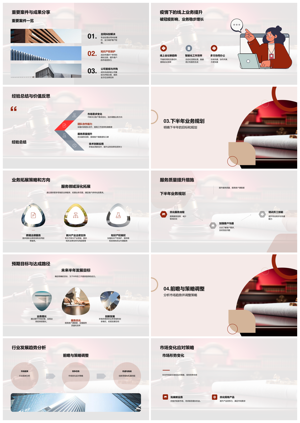 风云办公提供的法律业务半年业绩与未来发展规划策略PPT模板,下载格式为pptx,一共23页,作品中文字及图均可以修改和编辑,图片更改请在作品中右键图片并更换,文字修改请直接点击文字进行修改。