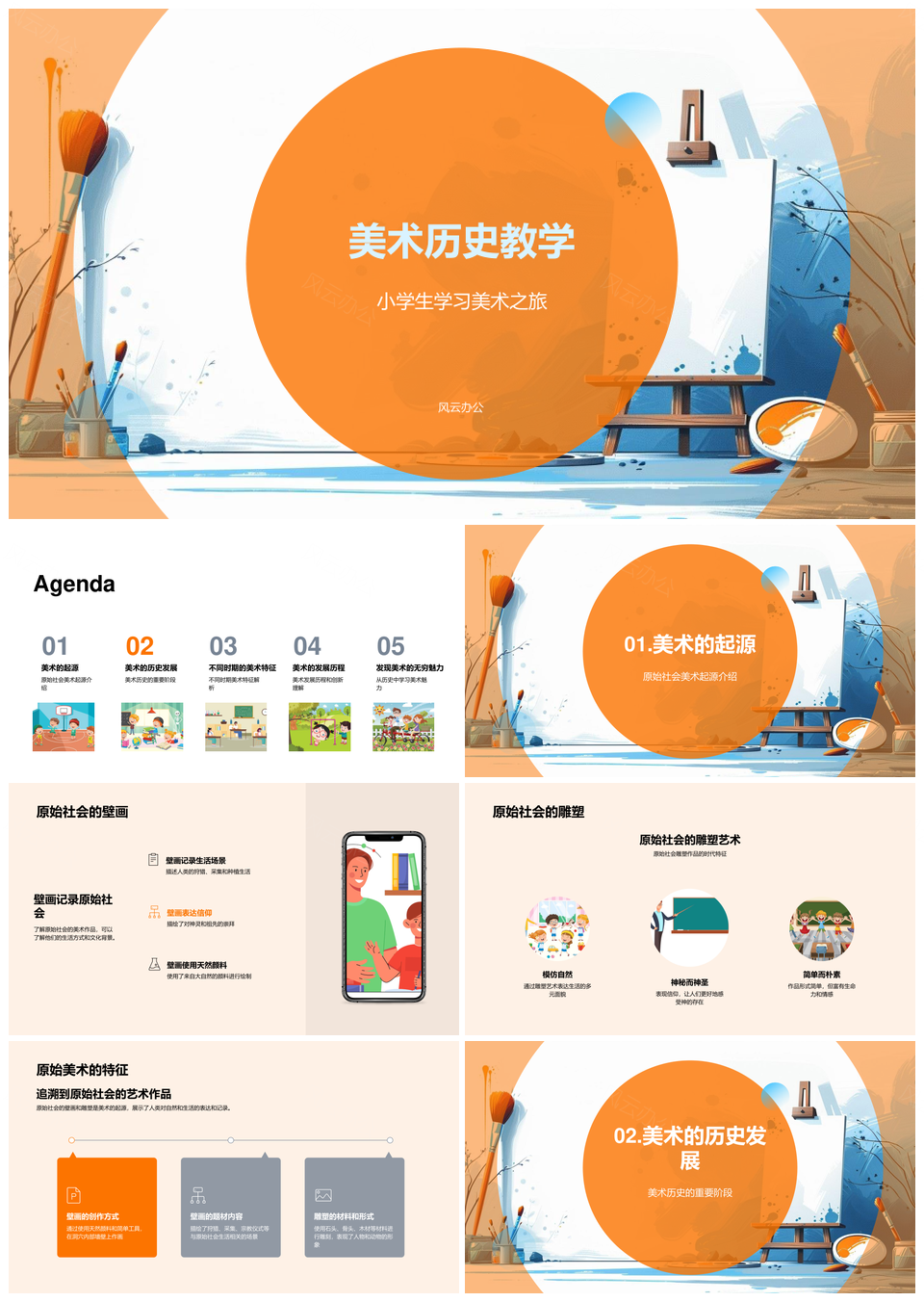 风云办公提供的美术史起源壁画雕塑及发展教学PPT模板,下载格式为pptx,一共25页,作品中文字及图均可以修改和编辑,图片更改请在作品中右键图片并更换,文字修改请直接点击文字进行修改。