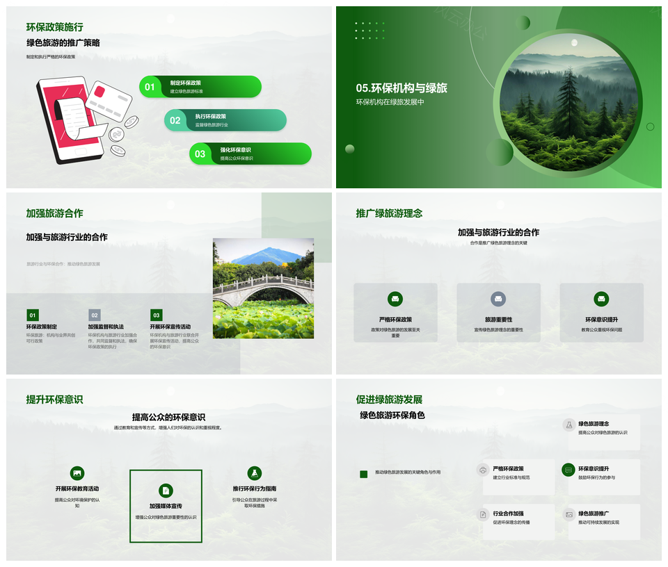 绿色旅游行业合作机构专家共护生态文化PPT模板推荐