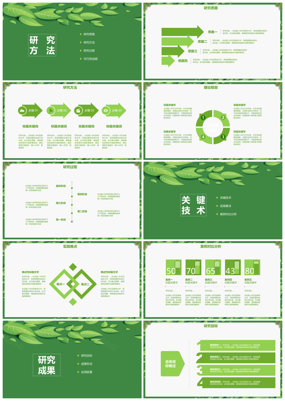 这是一张绿色绿叶小清新毕业答辩论文PPT模板,包含绿色、绿叶、小清新、毕业、答辩、论文等主题内容,也可用作绿色绿叶小清新、绿色绿叶、绿叶小清新、毕业答辩论文、绿色小清新、小清新论文、绿色论文、绿叶论文等PPT场景使用。 风云办公提供的绿色绿叶小清新毕业答辩论文PPT模板,下载格式为pptx,一共27页,作品中文字及图均可以修改和编辑,图片更改请在作品中右键图片并更换,文字修改请直接点击文字进行修改。