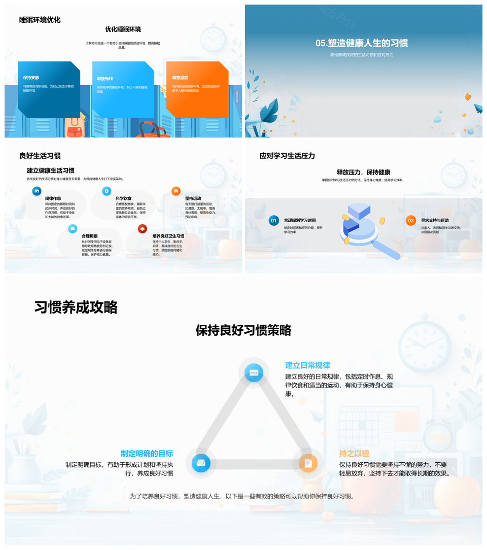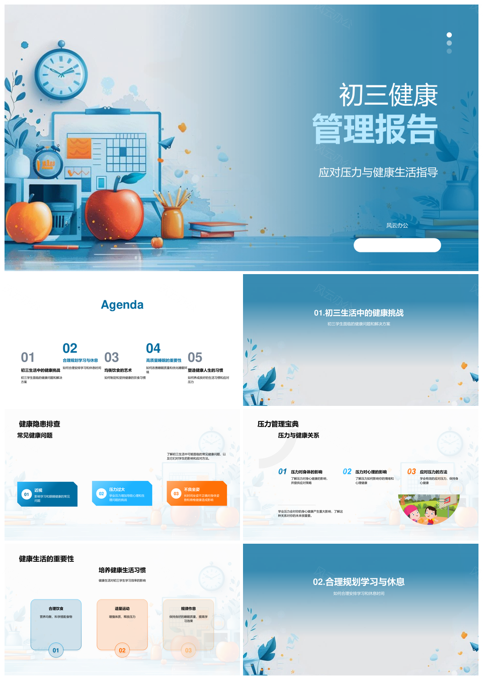 初三学生健康管理提升学习效率生活习惯时间管理心理PPT模板