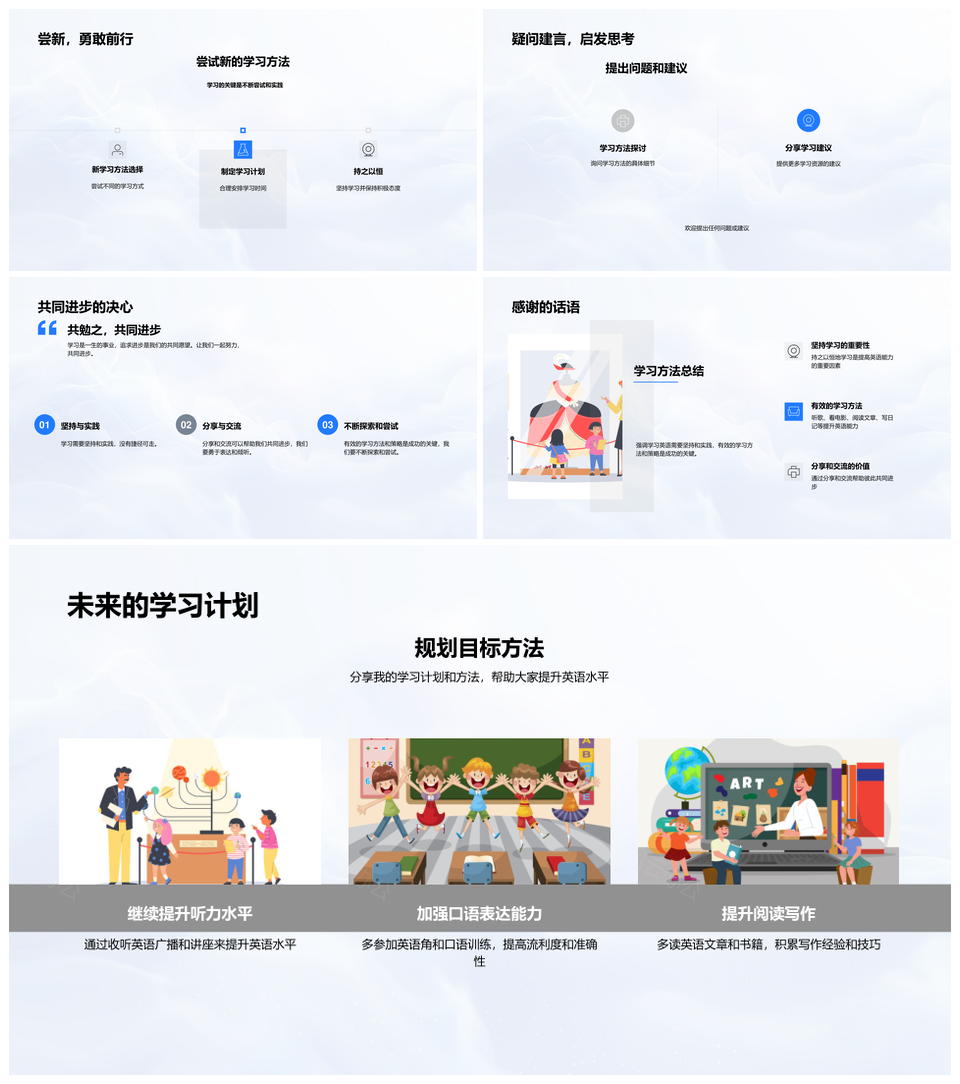 英语学习策略目标单词听力语法听说读写评估困难PPT模板