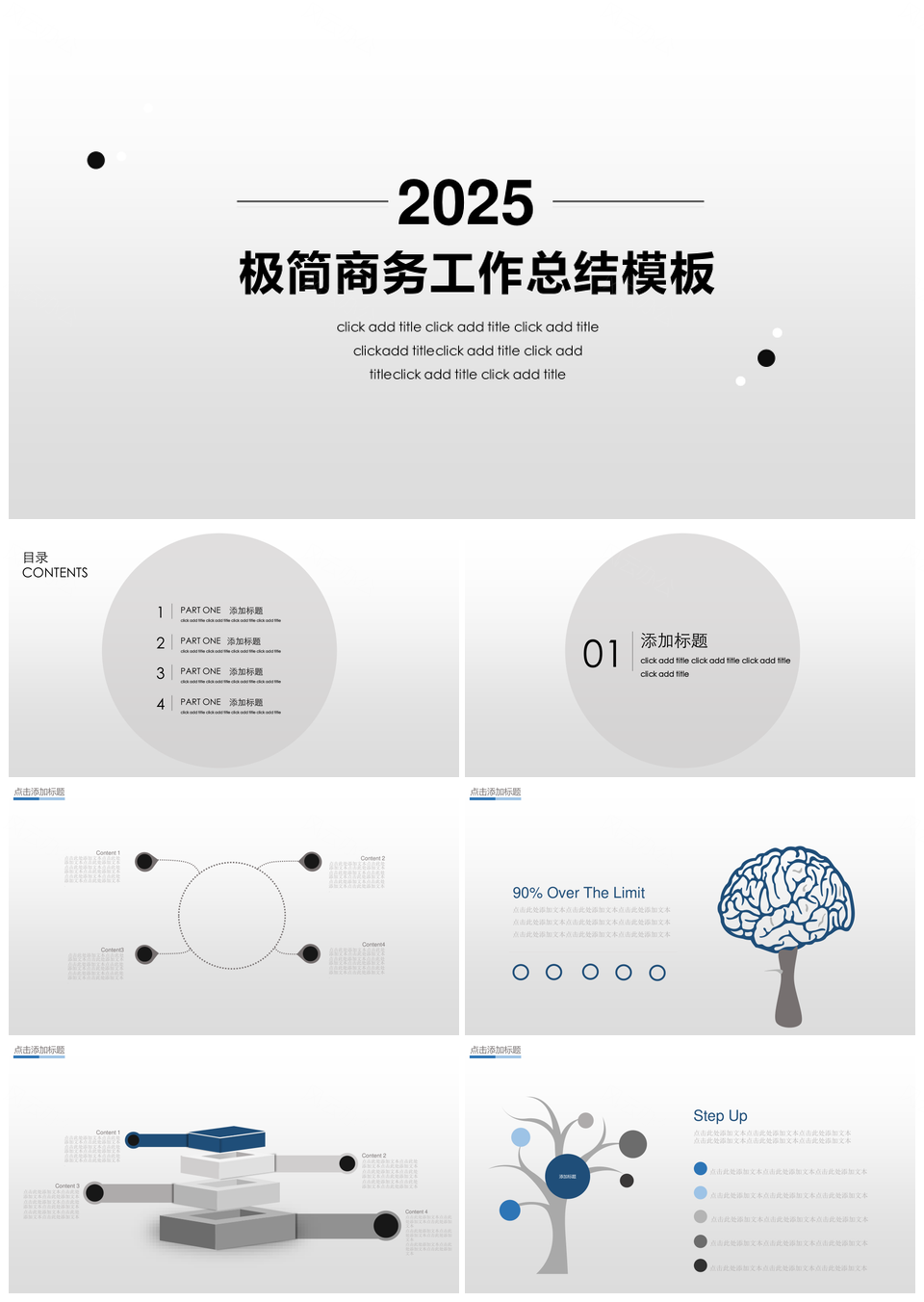 2025灰色商务工作总结极简工作计划大气通用PPT模板推荐