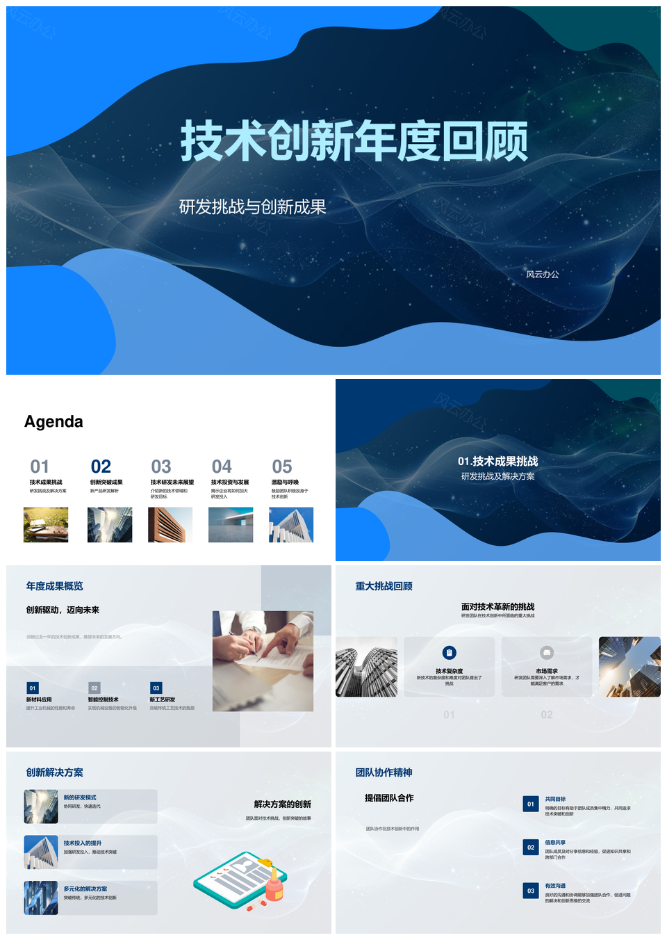 风云办公提供的技术研发年度创新成果与未来展望PPT模板,下载格式为pptx,一共33页,作品中文字及图均可以修改和编辑,图片更改请在作品中右键图片并更换,文字修改请直接点击文字进行修改。