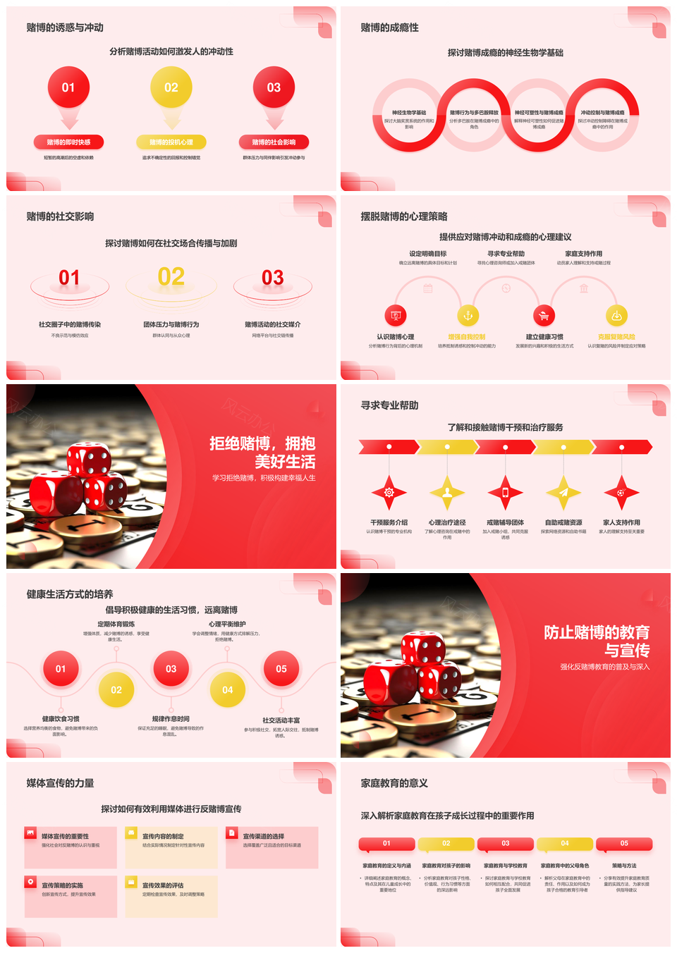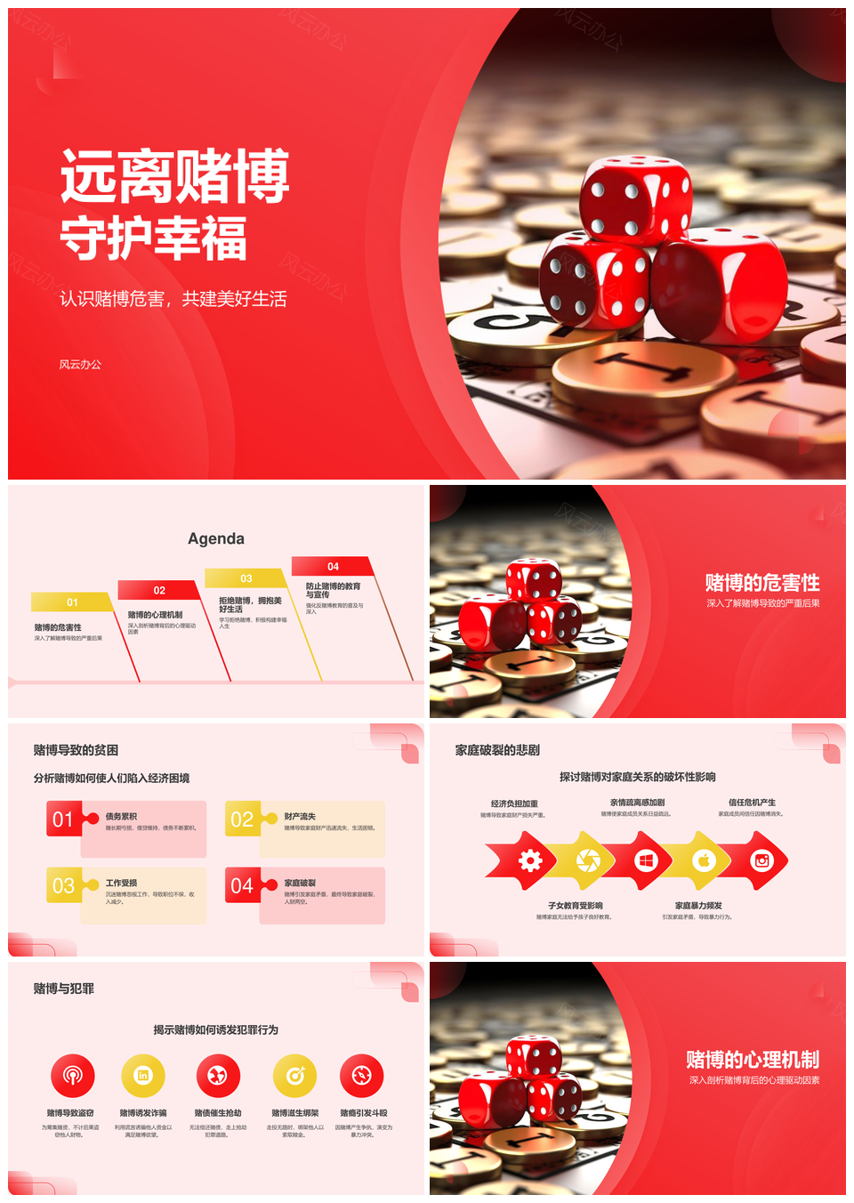 风云办公提供的远离赌博防止犯罪健康生活普及培训PPT模板,下载格式为pptx,一共18页,作品中文字及图均可以修改和编辑,图片更改请在作品中右键图片并更换,文字修改请直接点击文字进行修改。