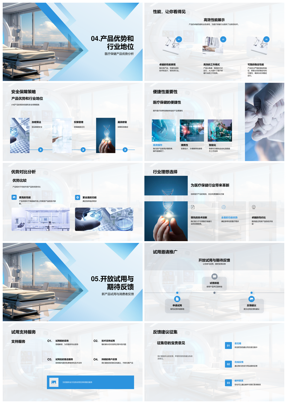 这是一张创新医疗科技智创高效安全便捷应用体验PPT模板,包含创新、医疗科技、智创、高效、安全、便捷、应用体验等主题内容,也可用作创新医疗科技智创、医疗科技智创高效、科技智创高效安全、智创高效安全便捷、高效安全便捷应用体验、创新医疗科技、医疗科技智创、智创高效安全、高效安全便捷、安全便捷应用体验、创新医疗、医疗科技、智创高效、高效安全、安全便捷等PPT场景使用。 风云办公提供的创新医疗科技智创高效安全便捷应用体验PPT模板,下载格式为pptx,一共28页,作品中文字及图均可以修改和编辑,图片更改请在作品中右键图片并更换,文字修改请直接点击文字进行修改。