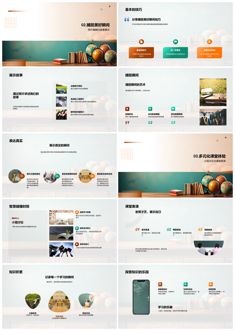 课堂快照师生共摄学习生活相册图集PPT模板推荐