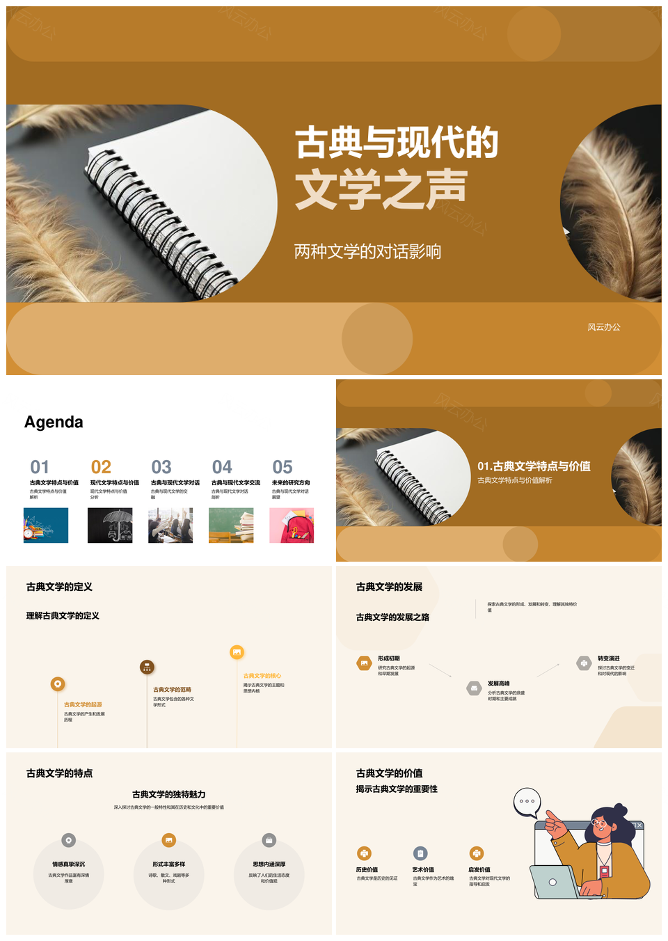 风云办公提供的古典现代文学对话人性社会探析PPT模板,下载格式为pptx,一共33页,作品中文字及图均可以修改和编辑,图片更改请在作品中右键图片并更换,文字修改请直接点击文字进行修改。