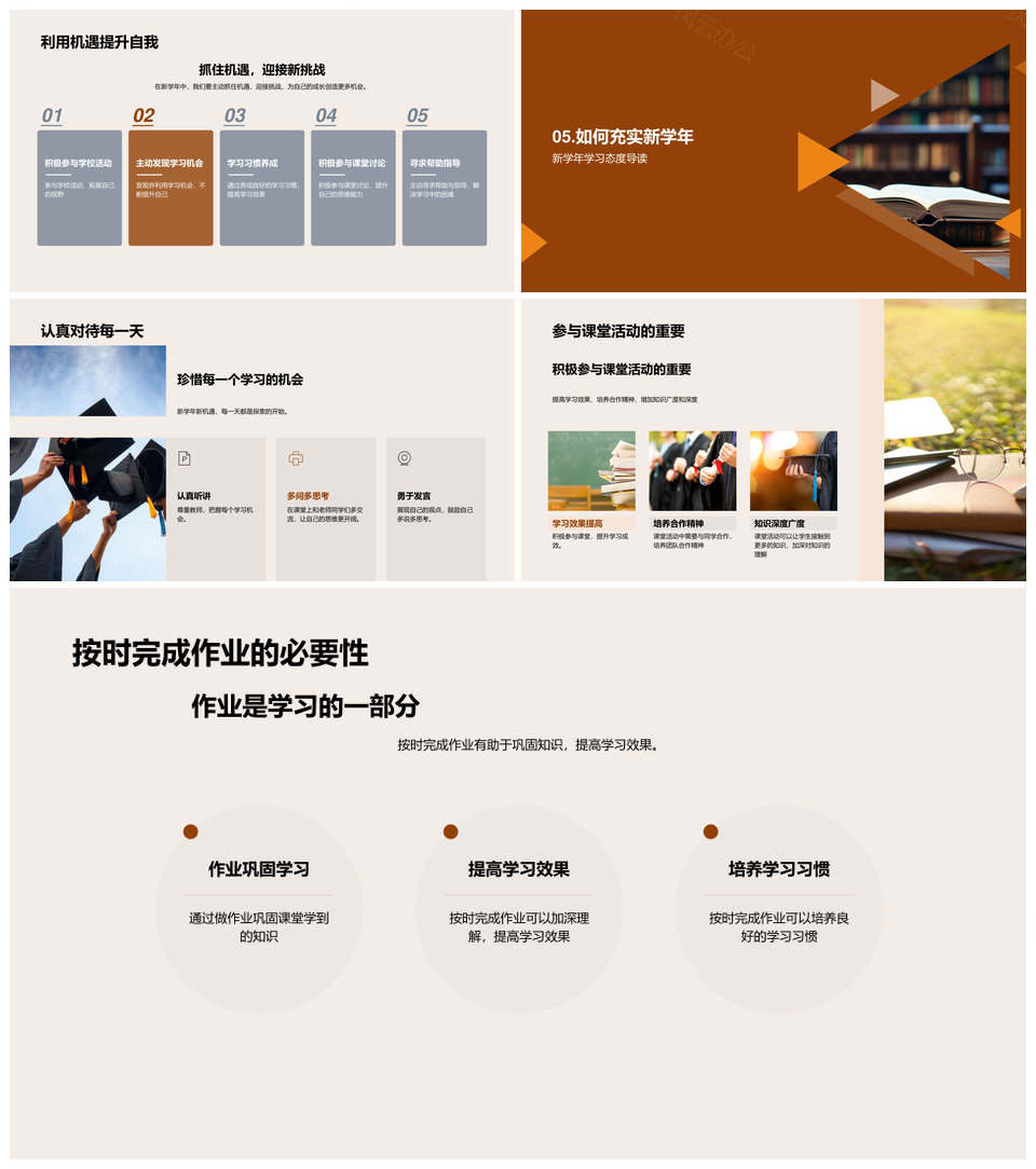 风云办公提供的新学年书启征程惜时高效克挑战PPT模板,下载格式为pptx,一共23页,作品中文字及图均可以修改和编辑,图片更改请在作品中右键图片并更换,文字修改请直接点击文字进行修改。
