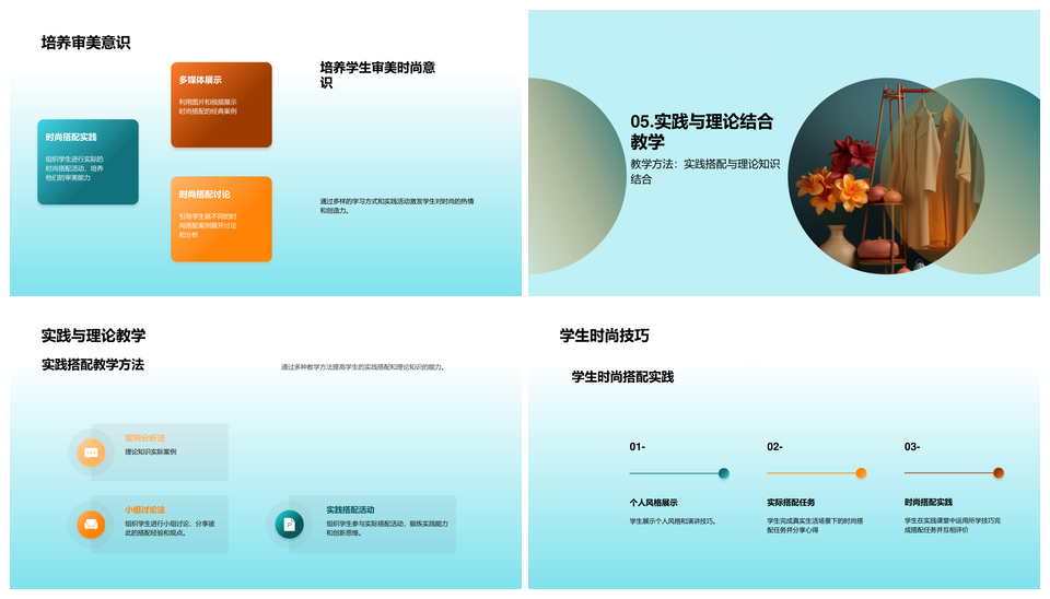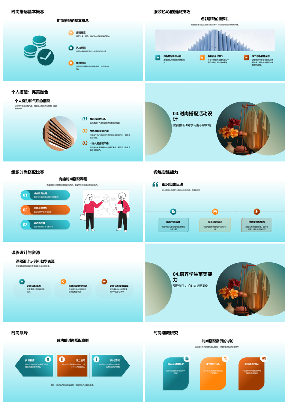 这是一张中学生时尚搭配课程专家指导色彩美学设计PPT模板,包含中学生、时尚搭配、课程、专家、指导、色彩美学、设计等主题内容,也可用作中学生时尚搭配课程、专家指导色彩美学设计、指导色彩美学设计、中学生时尚搭配、时尚搭配课程、课程专家指导、专家指导色彩、指导色彩美学、色彩美学设计、时尚搭配、搭配课程、课程专家、专家指导、色彩美学、美学设计等PPT场景使用。 风云办公提供的中学生时尚搭配课程专家指导色彩美学设计PPT模板,下载格式为pptx,一共22页,作品中文字及图均可以修改和编辑,图片更改请在作品中右键图片并更换,文字修改请直接点击文字进行修改。