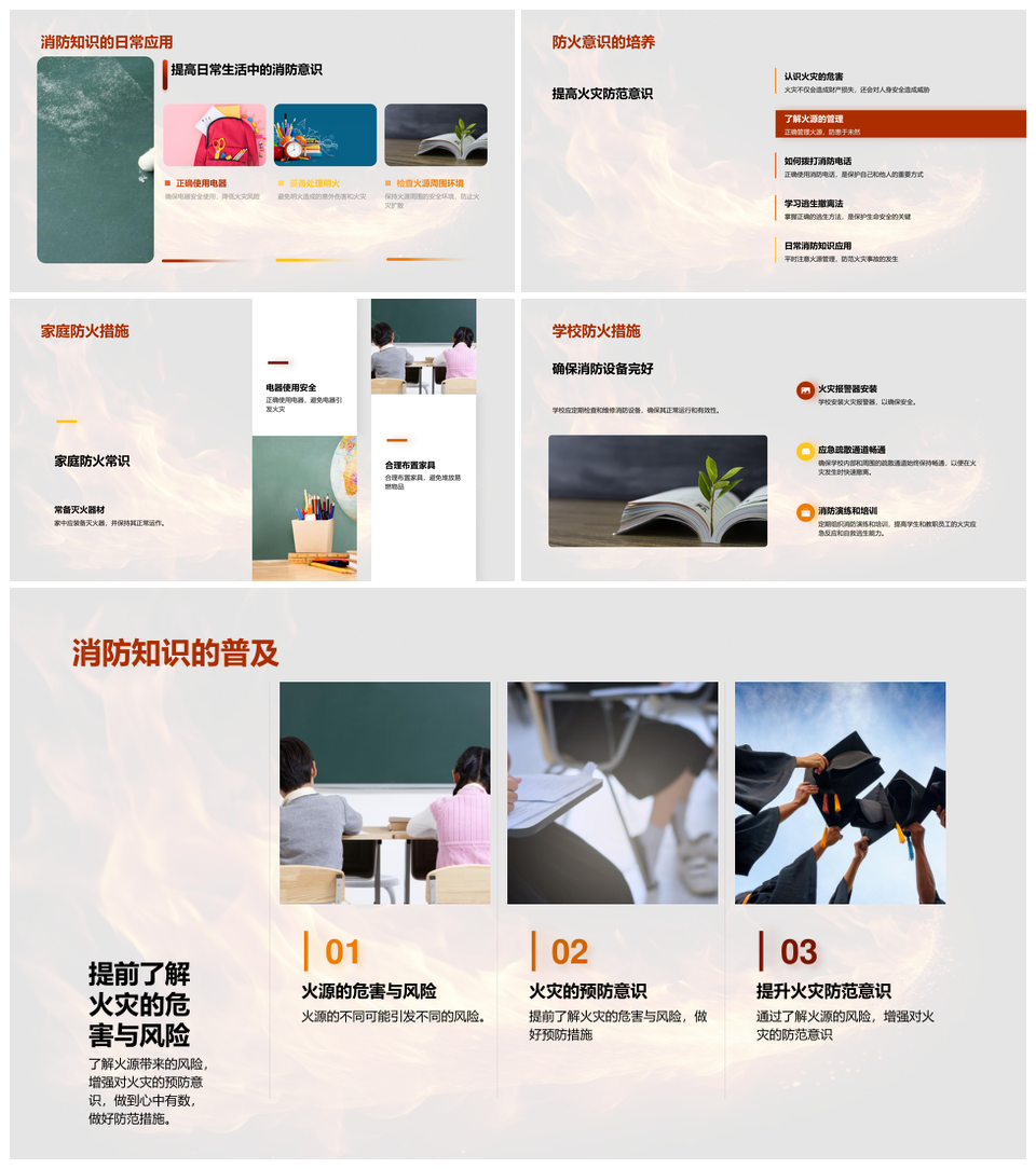 这是一张消防安全应急响应火源管理火灾预防技能PPT模板,包含消防安全、应急响应、火源管理、火灾预防、技能等主题内容,也可用作消防安全应急响应火源管理火灾预防、应急响应火源管理火灾预防技能、消防安全火源管理火灾预防技能、消防安全应急响应火灾预防技能、火源管理火灾预防技能、消防安全应急响应火源管理、应急响应火源管理火灾预防、消防安全火灾预防技能、应急响应火灾预防技能、火源管理火灾预防、消防安全应急响应、火灾预防技能、应急响应火源管理、消防安全火灾预防、火源管理技能等PPT场景使用。 风云办公提供的消防安全应急响应火源管理火灾预防技能PPT模板,下载格式为pptx,一共33页,作品中文字及图均可以修改和编辑,图片更改请在作品中右键图片并更换,文字修改请直接点击文字进行修改。