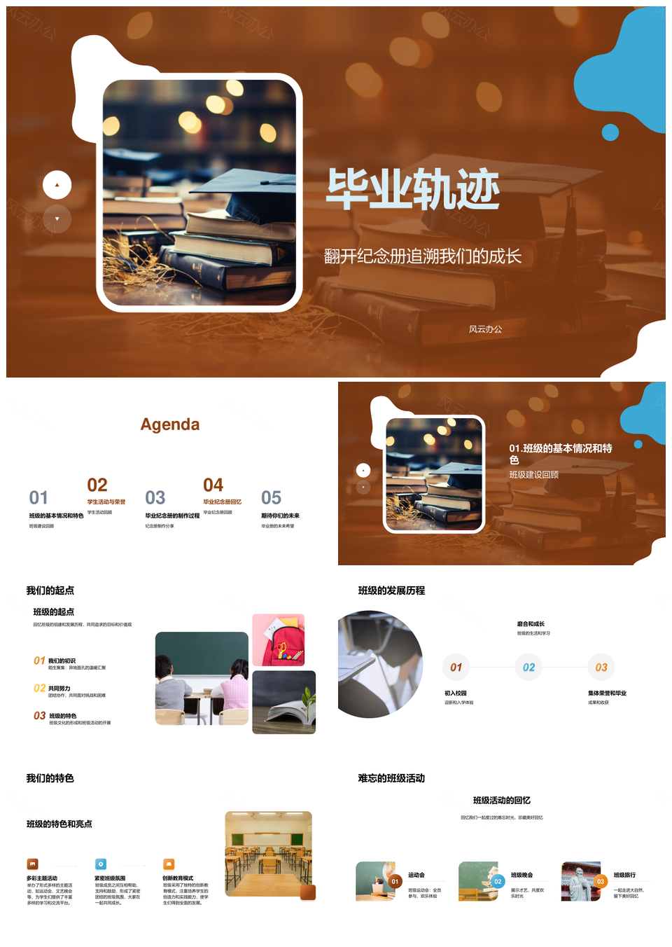 风云办公提供的毕业纪念册班级特色荣誉成就典礼风采PPT模板,下载格式为pptx,一共33页,作品中文字及图均可以修改和编辑,图片更改请在作品中右键图片并更换,文字修改请直接点击文字进行修改。