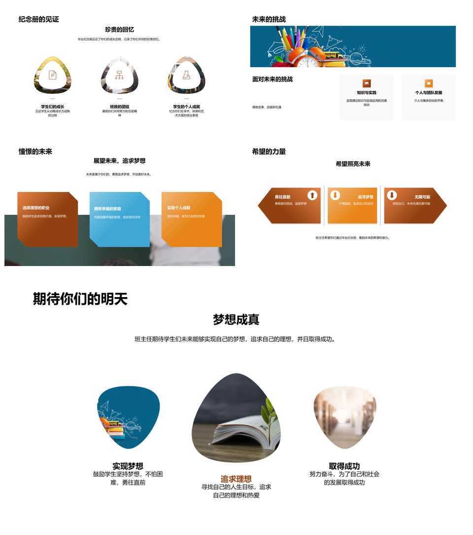 这是一张毕业纪念册班级特色荣誉成就典礼风采PPT模板,包含毕业纪念册、班级、特色、荣誉、成就、典礼、风采等主题内容,也可用作毕业纪念册班级特色、班级特色荣誉成就典礼、毕业纪念册典礼风采、荣誉成就典礼风采、班级特色荣誉成就、毕业班级特色荣誉、毕业典礼风采展示、纪念册班级荣誉成就、特色荣誉成就风采、班级成就典礼风采、荣誉成就毕业典礼、毕业纪念册特色班级、班级特色典礼风采、纪念册荣誉成就风采、毕业班级荣誉成就等PPT场景使用。