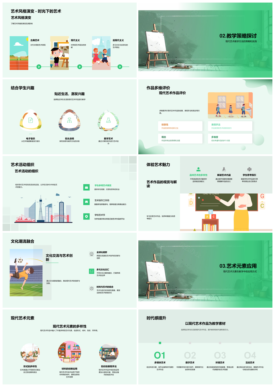 风云办公提供的现代艺术教师创新教学策略方法PPT模板,下载格式为pptx,一共33页,作品中文字及图均可以修改和编辑,图片更改请在作品中右键图片并更换,文字修改请直接点击文字进行修改。