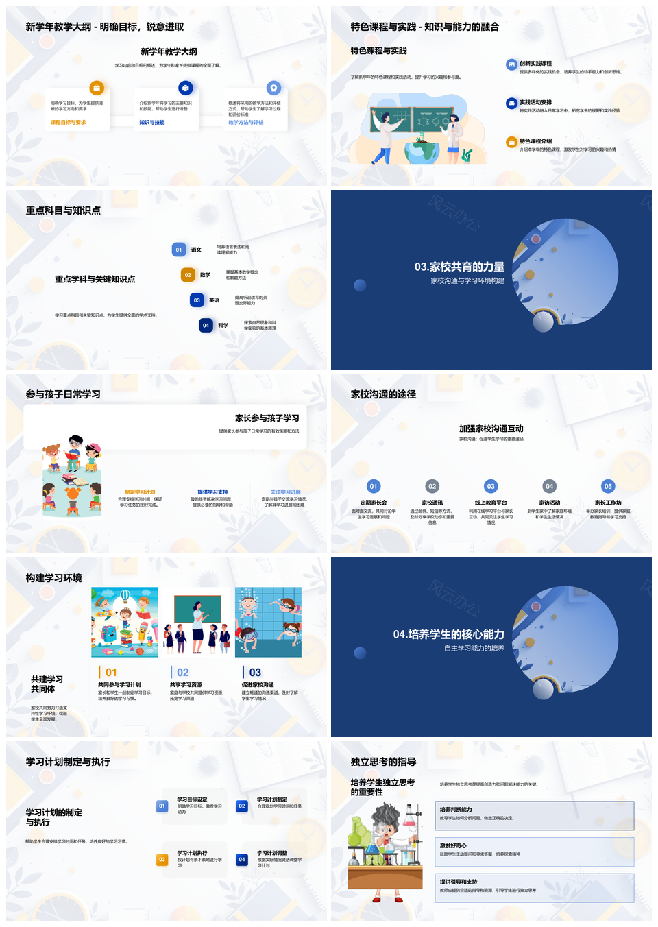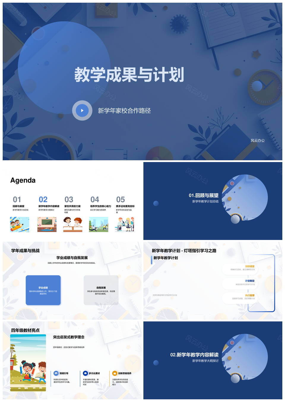 四年级教学成果计划教材亮点重点科目知识点PPT模板推荐