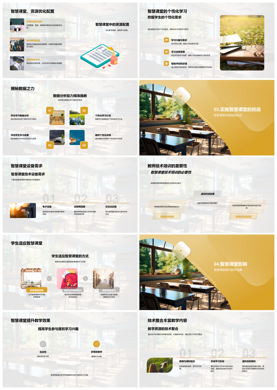 这是一张智慧课堂技术赋能个性化学习优化教学效果参与PPT模板,包含智慧课堂、技术、赋能、个性化学习、优化、教学效果、参与等主题内容,也可用作智慧课堂技术赋能个性化学习、技术赋能个性化学习优化、赋能个性化学习优化教学效果、个性化学习优化教学效果参与、智慧课堂技术赋能、技术赋能个性化学习、赋能个性化学习优化、个性化学习优化教学效果、优化教学效果参与、智慧课堂技术、技术赋能、赋能个性化学习、个性化学习优化、优化教学效果、教学效果参与等PPT场景使用。 风云办公提供的智慧课堂技术赋能个性化学习优化教学效果参与PPT模板,下载格式为pptx,一共23页,作品中文字及图均可以修改和编辑,图片更改请在作品中右键图片并更换,文字修改请直接点击文字进行修改。