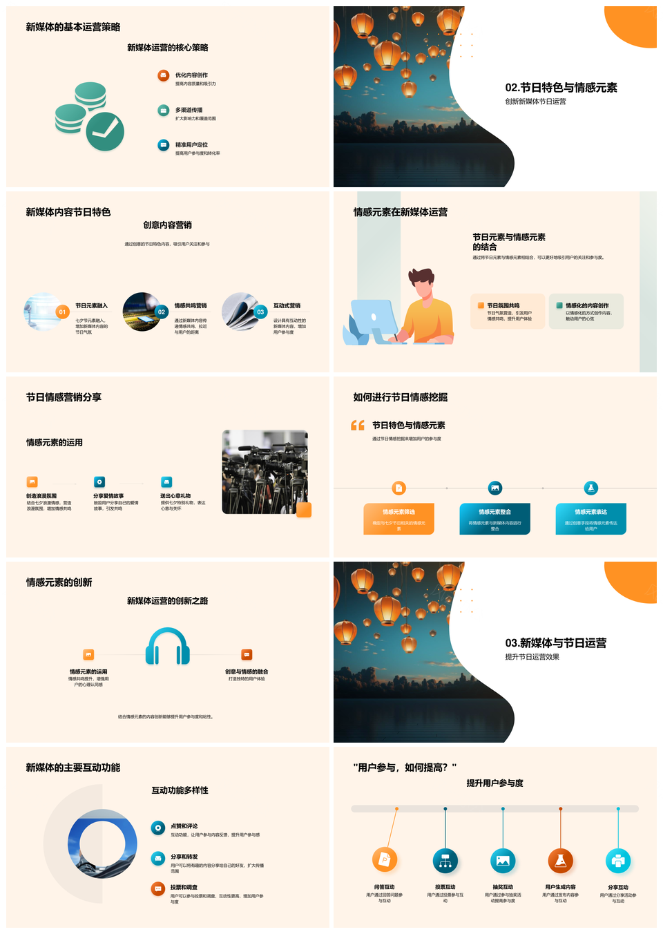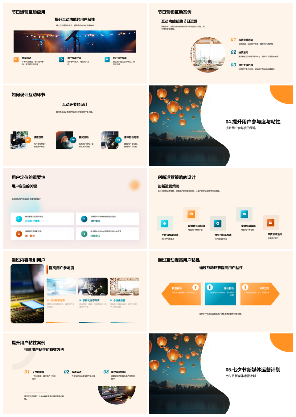 风云办公提供的七夕新媒体情感互动运营策PPT模板,下载格式为pptx,一共33页,作品中文字及图均可以修改和编辑,图片更改请在作品中右键图片并更换,文字修改请直接点击文字进行修改。