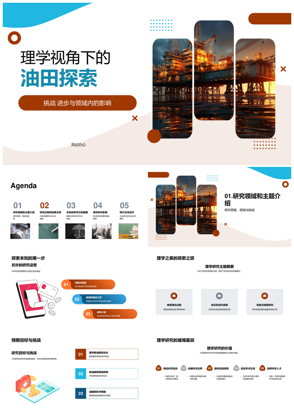 风云办公提供的理学研究油井探索学术合作实验挑战PPT模板,下载格式为pptx,一共28页,作品中文字及图均可以修改和编辑,图片更改请在作品中右键图片并更换,文字修改请直接点击文字进行修改。