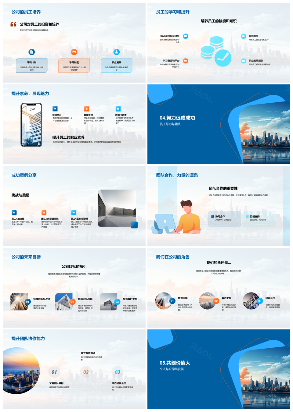 风云办公提供的员工团队合作职业发展驱动企业成长PPT模板,下载格式为pptx,一共33页,作品中文字及图均可以修改和编辑,图片更改请在作品中右键图片并更换,文字修改请直接点击文字进行修改。