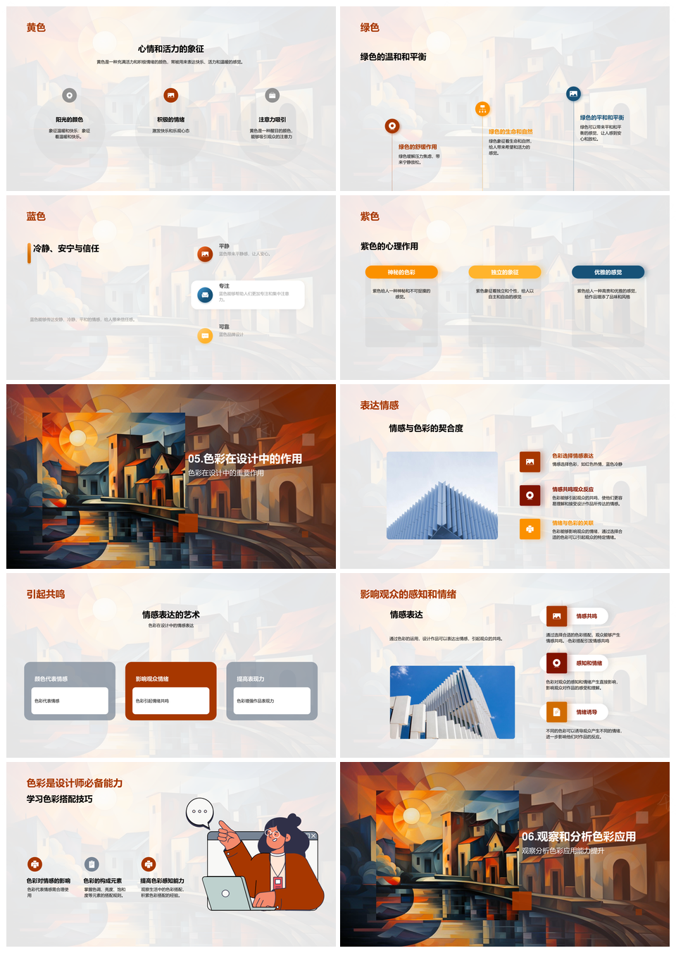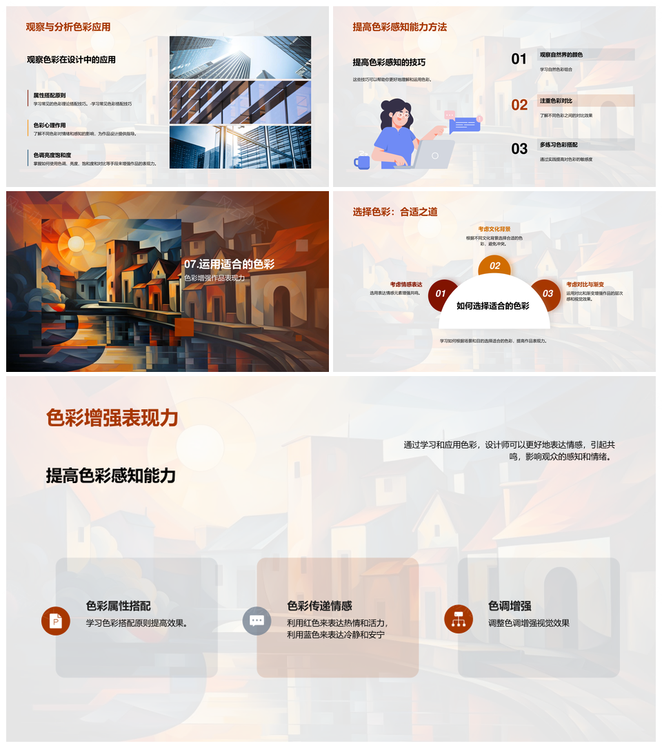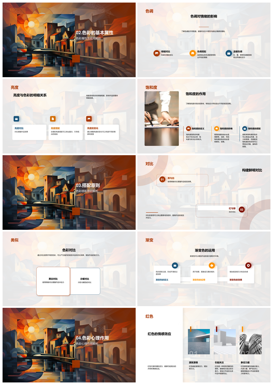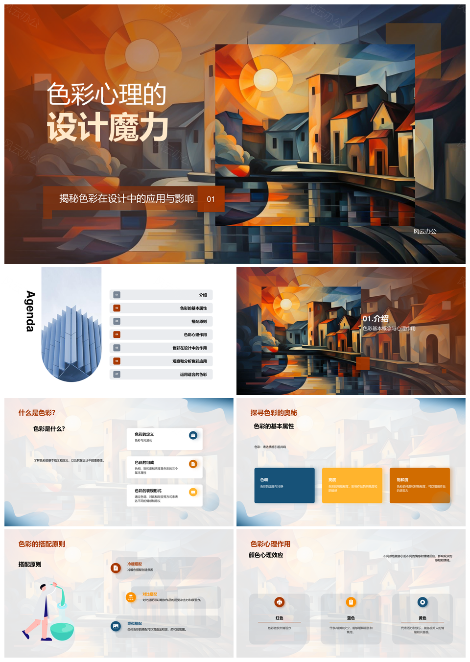色彩搭配色轮设计与初中艺术心理学PPT模板推荐