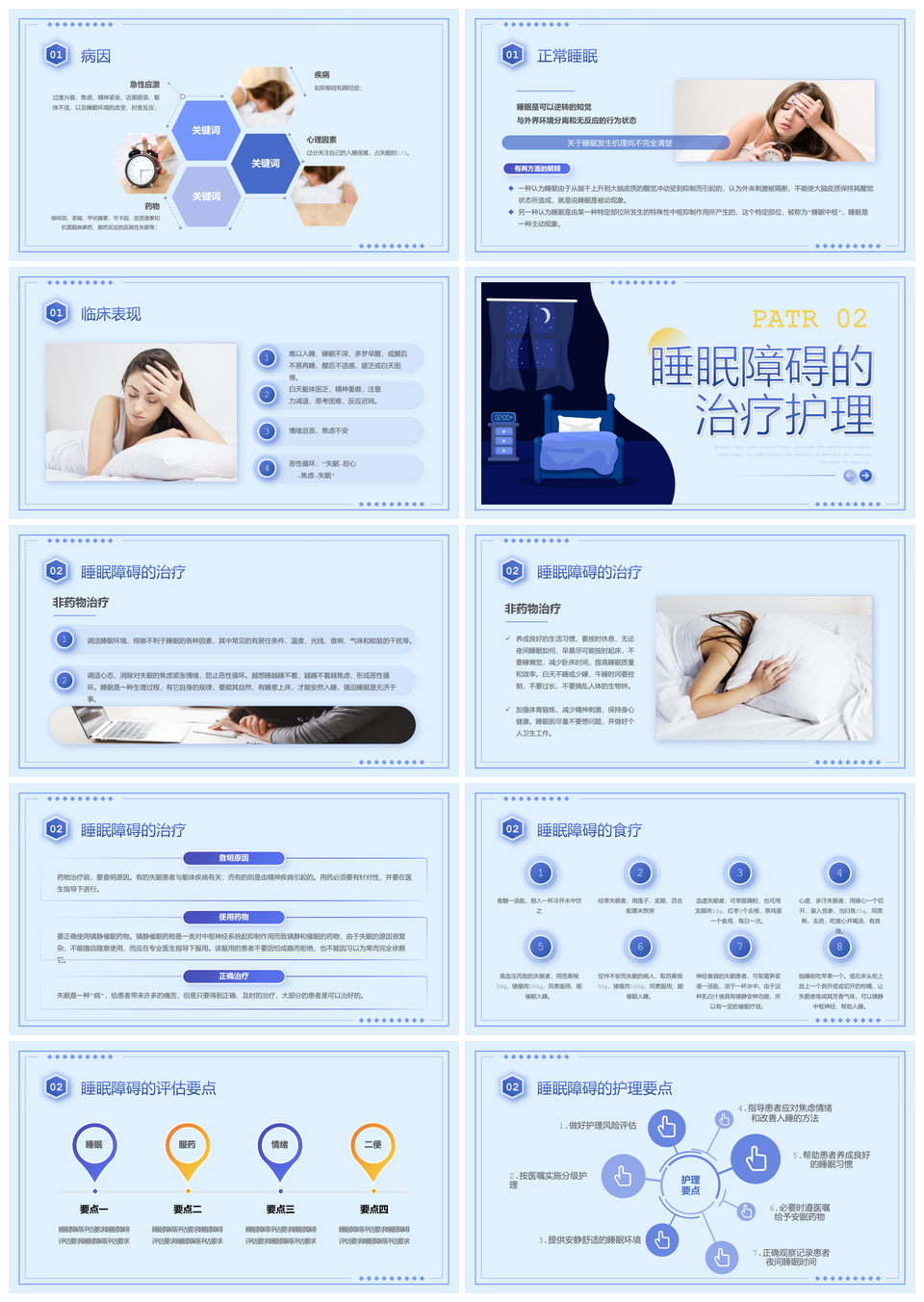 蓝紫简约医疗睡眠障碍护理培训PPT模板推荐