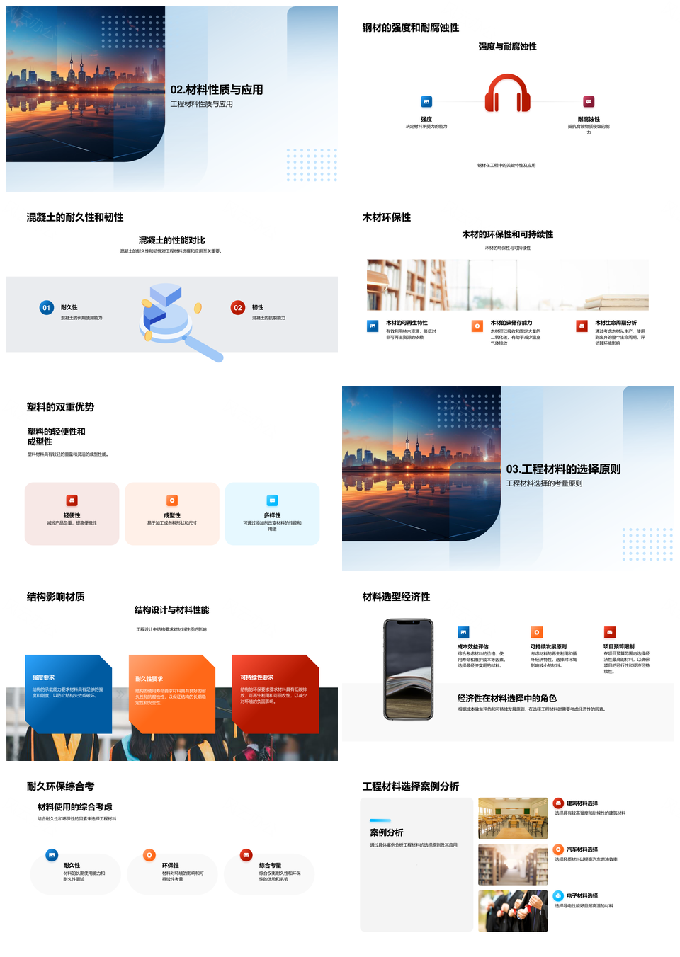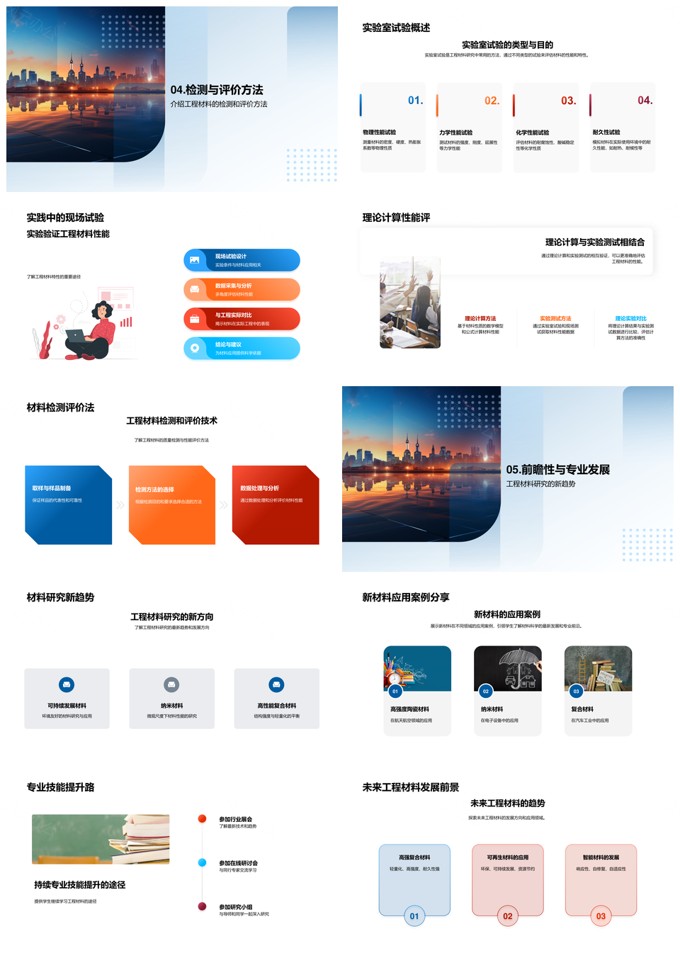 这是一张现代工程材料性能应用与发展趋势PPT模板,包含现代、工程材料、性能、应用、发展趋势等主题内容,也可用作现代工程材料性能、工程材料性能应用、材料性能应用发展、性能应用发展趋势、现代工程材料、工程材料性能、材料性能应用、性能应用发展、应用发展趋势、现代工程、工程材料、材料性能、性能应用、应用发展、发展趋势等PPT场景使用。