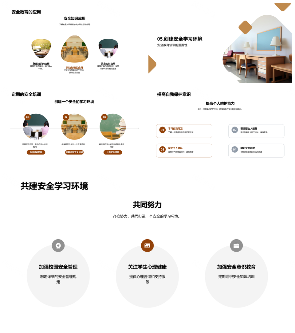 这是一张校园安全教育防护自救急救消防知识PPT模板,包含校园、安全教育、防护、自救、急救、消防知识等主题内容,也可用作校园安全教育防护自救、安全教育培训防护自救、教育防护自救急救、防护自救急救消防、自救急救消防知识、校园安全教育防护、安全教育防护自救、教育防护自救急救、防护自救急救消防、自救急救消防知识、校园安全、安全教育、防护自救、自救急救、消防知识等PPT场景使用。