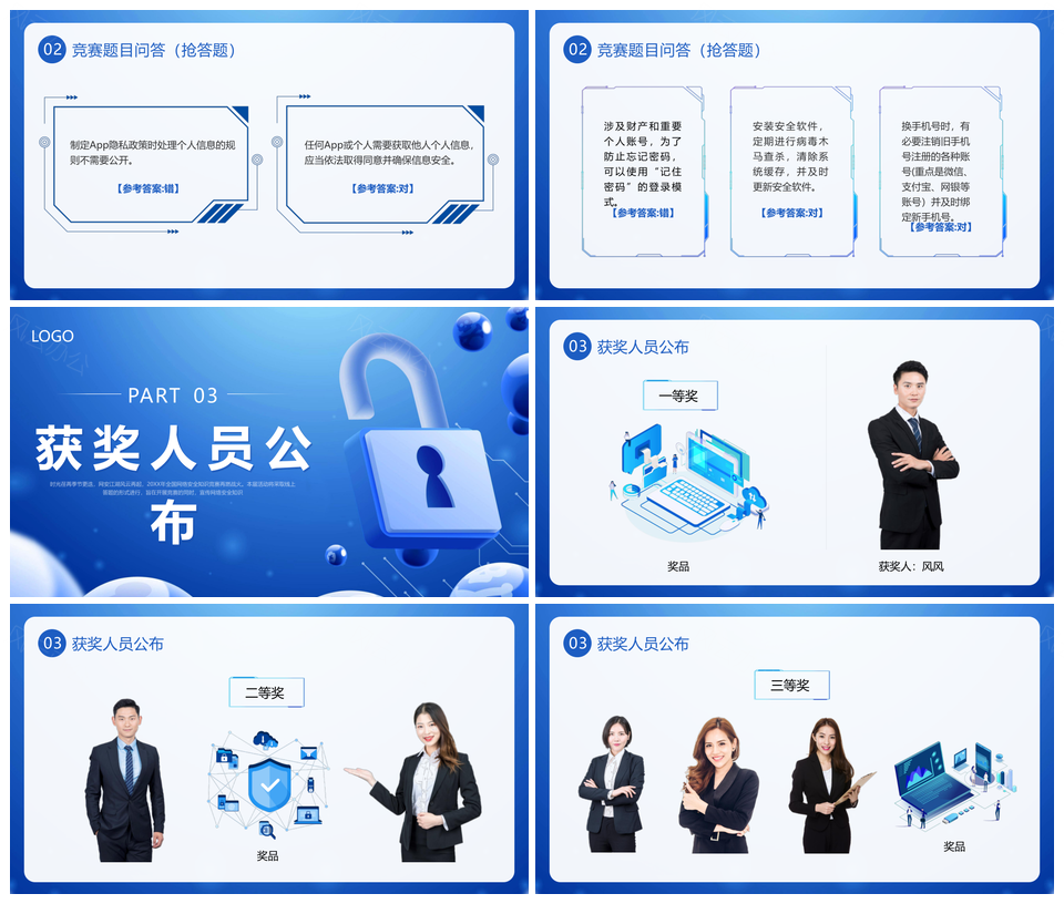 2025国家网络安全周蓝色卡通知识竞赛宣传PPT模板推荐