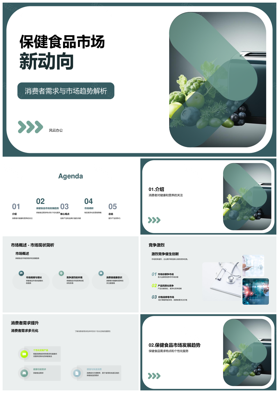 保健食品市场趋势多样化功能个性化需求PPT模板