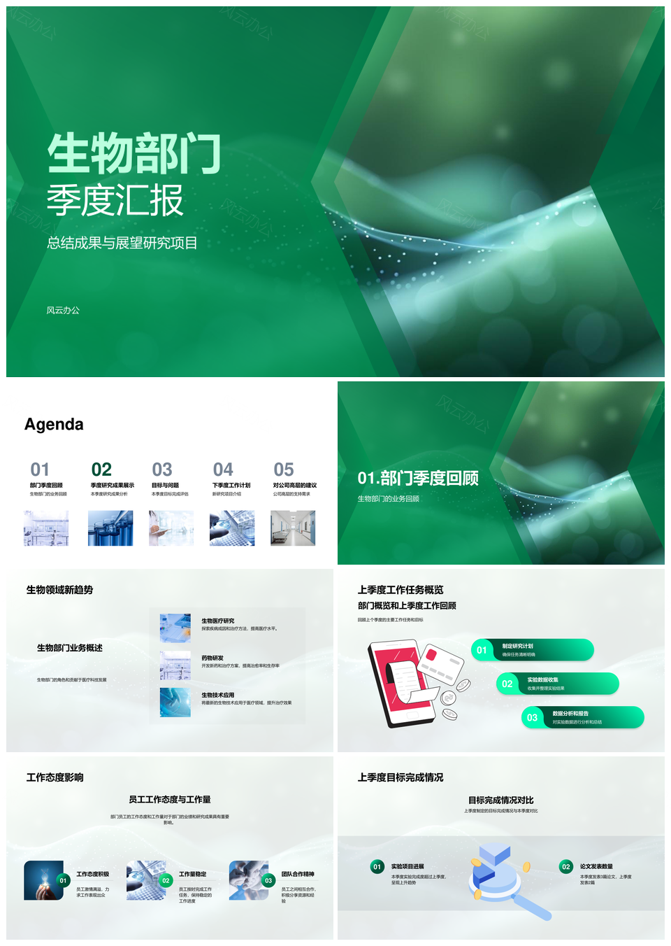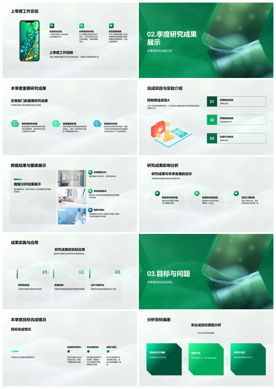生物部门季度汇报研究数据目标管理资源新项目医疗PPT模板推荐